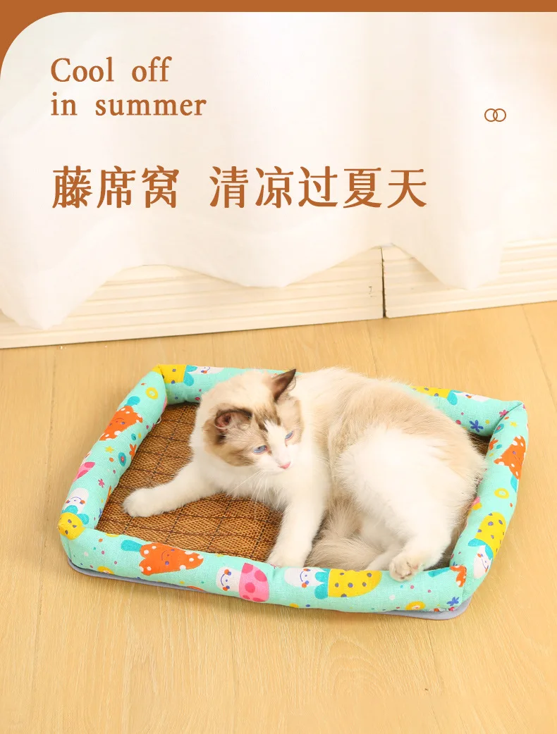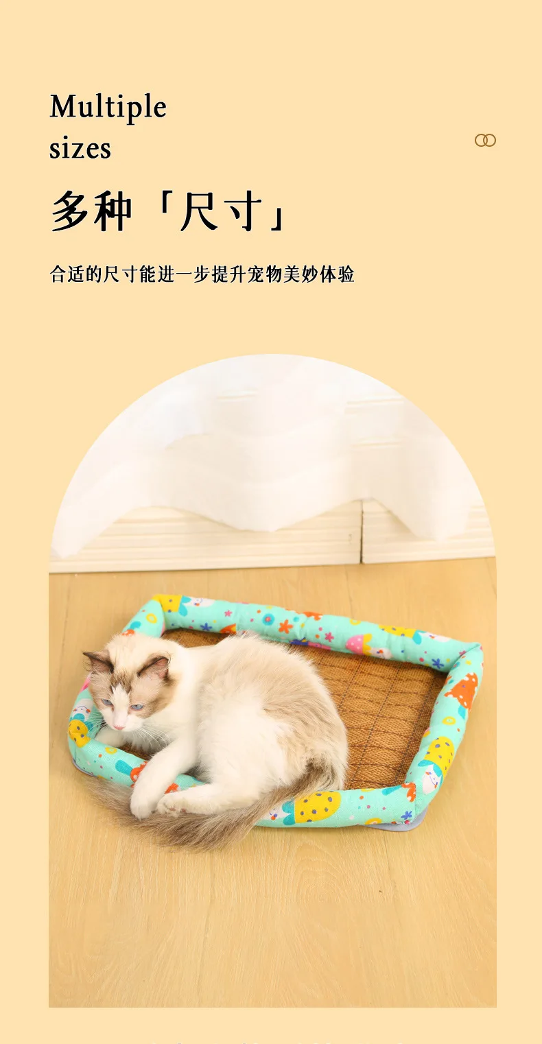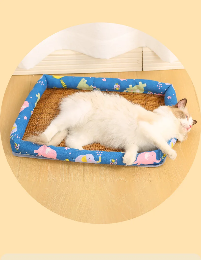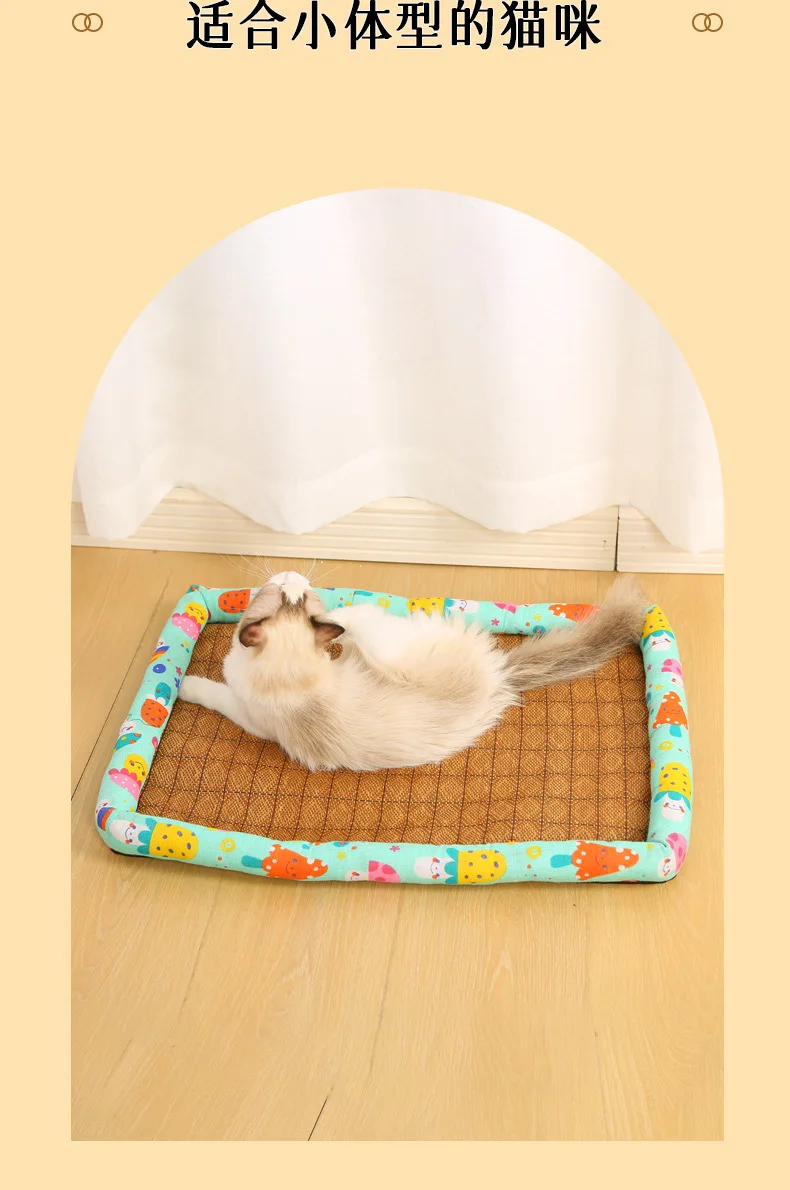 Almohadilla de hielo para mascotas, algodón y lino de verano, perros y gatos, estera Universal para mascotas con nido de gato refrescante de verano de alta temperatura