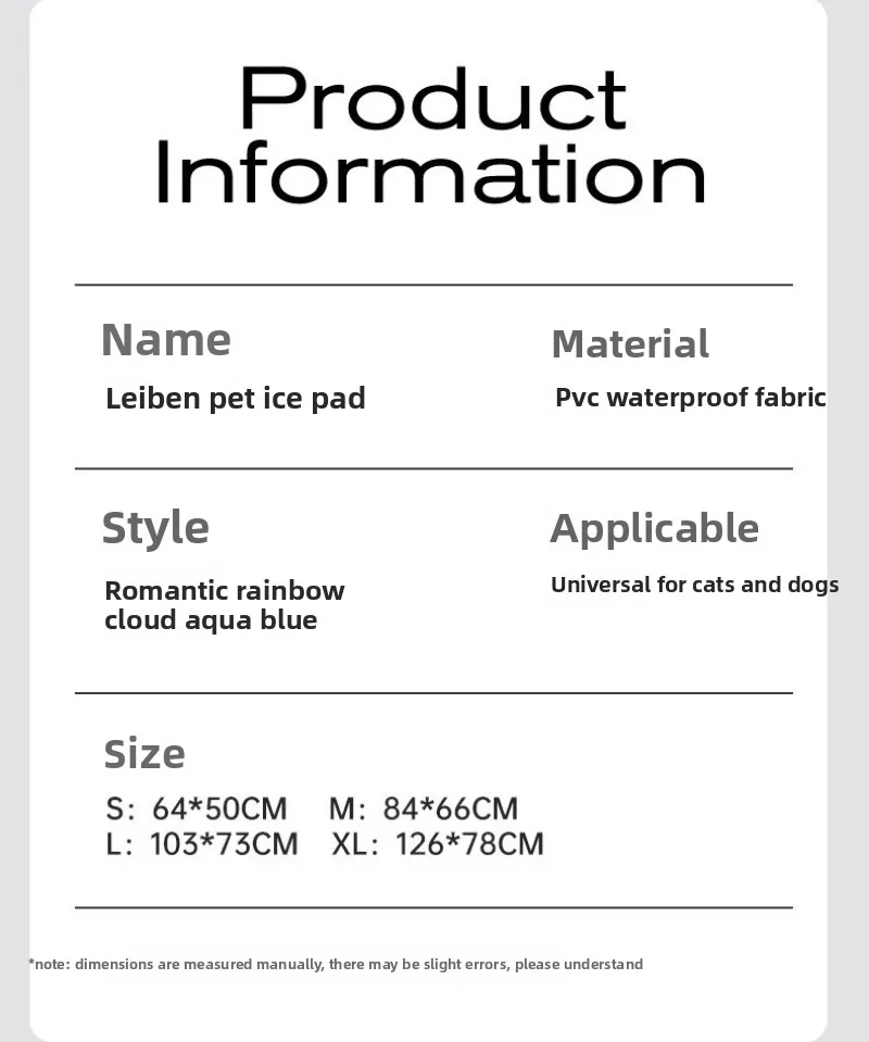Descripción:Estera de hielo para mascotas Verano Gato Verano, estera refrescante para dormirCaracterísticas:1.Resistente al desgaste y a los arañazos 2.Todo el cuerpo se puede lavar con agua. 3.Hidrogel polimérico 4.Gran espacio 5.Almohada de 6cm de altura para el cuidado de la columna cervical 6.Gel refrescante de resina absorbente de agua. PASO 7 Llene uniformemente
