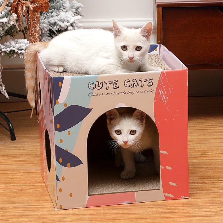 Almohadilla rascadora para gatos, casa para gatos de doble capa para interiores, papel corrugado duro, tablero rascador para gatos, juguetes de garra para moler