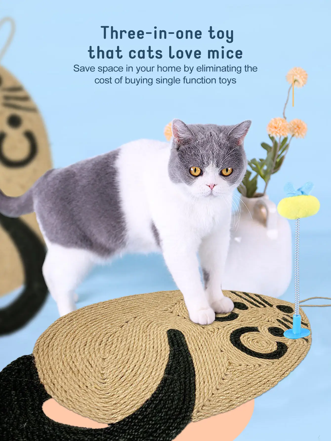 Almohadilla para rascar para gatos, almohadilla para rascar con forma de ratón divertida, alfombrilla antideslizante para rascar el suelo del gato, rascador colgante para gatos, almohadilla de Sisal
