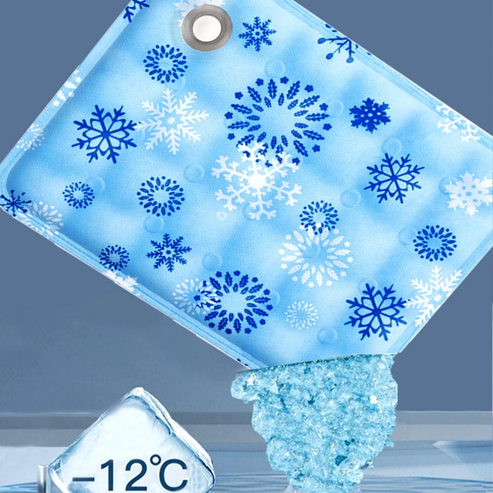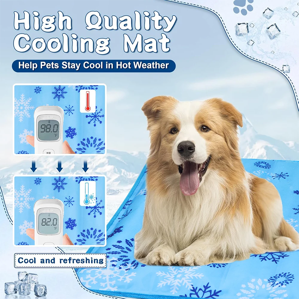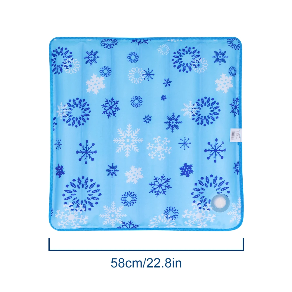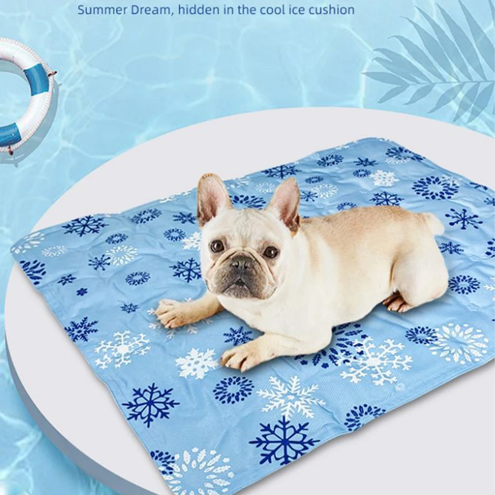 Esta almohadilla refrescante para mascotas presenta un color azul fresco con delicados patrones de copos de nieve, creando una refrescante atmósfera de verano.El patrón es hermoso y no se decolora fácilmente, ya sea colocado sobre pisos interiores, sofás o terrazas al aire libre, puede convertirse en una presencia llamativa, agregando un color único al espacio de las mascotas.