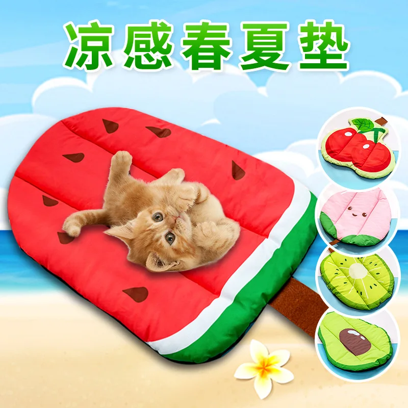 Almohadilla de refrigeración para mascotas de verano, almohadilla para gatos, almohadilla para perros, alfombrilla de refrigeración, jaula para gatos, almohadilla con forma de fruta, suministros para mascotas, relleno de algodón colorido
