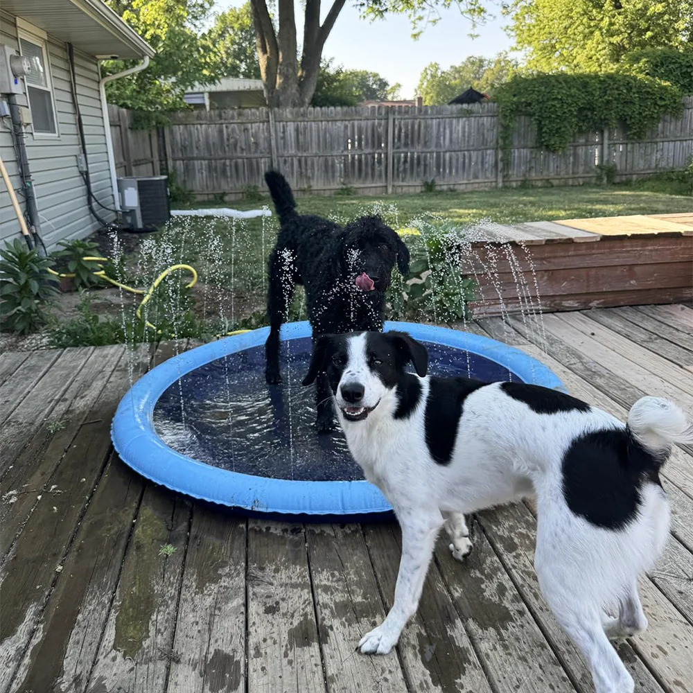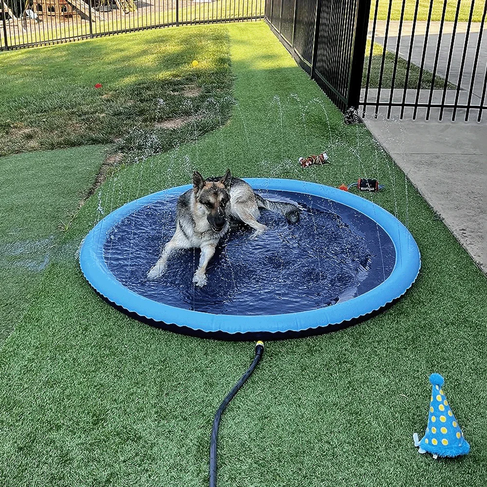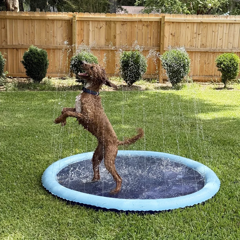 Mantenga su perro fresco durante los días de verano con un poco de juego acuático.A la mayoría de los perros les encanta salpicar en una piscina para perros.¿Quién puede cullarlos?Tendrán un rato divertido tanto con el efecto fuente como con el que simplemente se desplazarán dentro de la almohadilla para salpicaduras para perro.