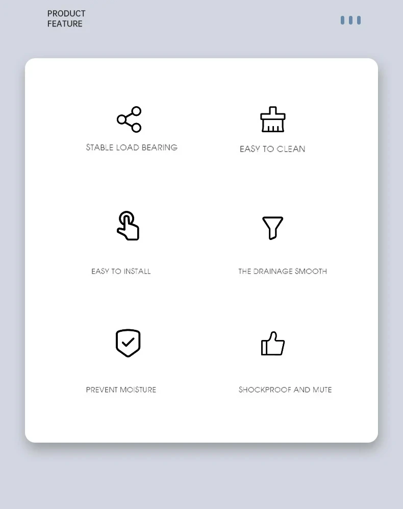 Ventilación y humedad, absorción de impactos y reducción de ruido, fácil de limpiar.