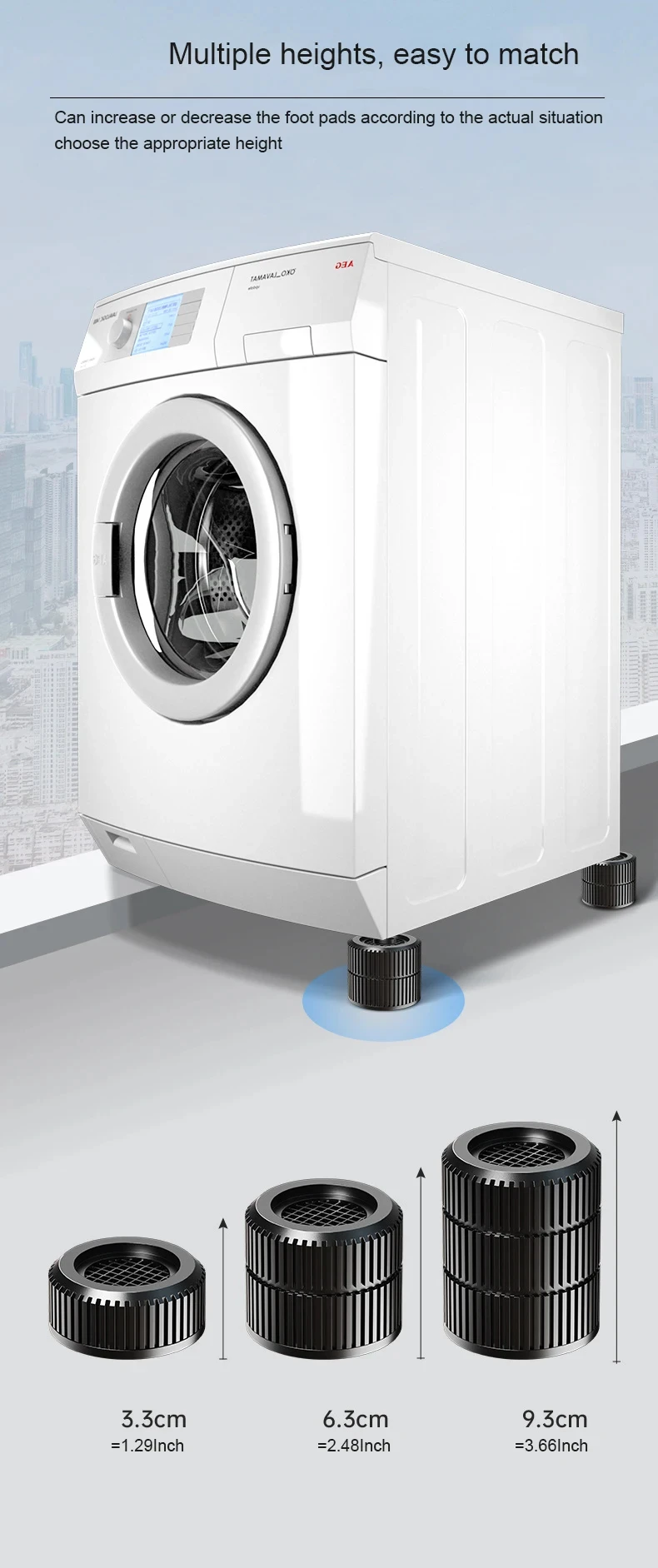 Almohadillas antideslizantes para lavadora, Base de soporte antivibración para secador de refrigerador, protectores universales de patas de muebles con reducción de ruido, soporte estable, 4 Uds.