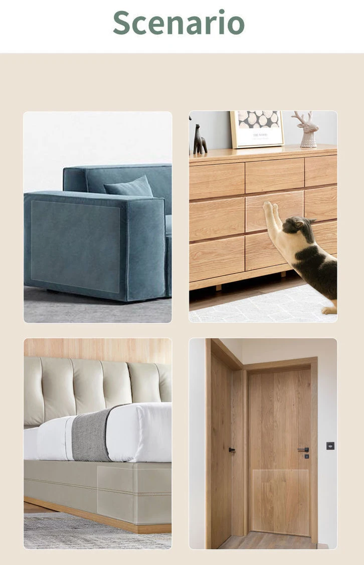 3.Amplia gama de aplicaciones: también puede instalar protección de sofás para gatos en paredes, alfombras, colchones, sillas, puertas, asientos de automóvil, reposabrazos de sofás, pantallas, etc.