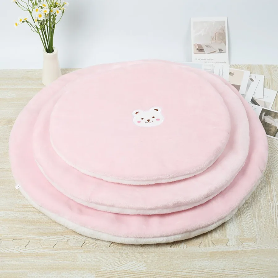 Cama circular para mascotas Snuggle Season con diseños bordados de osos, cuidadosamente confeccionada con tela de felpa de doble capa de alta calidad que proporciona suavidad y calidez similares a una nube para su mascota en otoño e invierno.El diseño circular presenta un borde elevado que crea una sensación de seguridad y brinda un soporte perfecto para la cabeza y el cuello para las mascotas que prefieren acurrucarse.Relleno de algodón PP hipoalergénico que conserva su forma después de un uso repetido, esta cama garantiza un confort duradero para su compañero peludo.