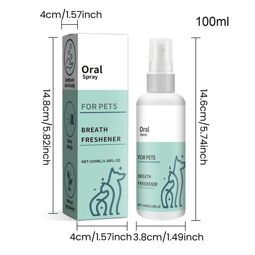 ¡Presentamos nuestro ambientador de aliento para perros! Neutraliza eficazmente los olores en la boca de los perros y penetra profundamente en los espacios entre los dientes y las comisuras de la boca. Diga adiós al mal aliento y hola a las relaciones más estrechas con su mejor amigo peludo. Mejore su tono rápidamente y haga que el proceso de cuidado sea más fácil y agradable.