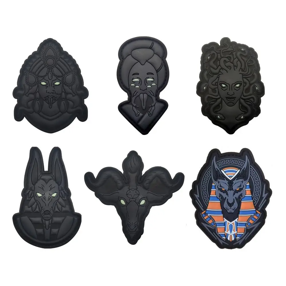 Nombre del producto:Parche de PVC para dioses antiguos, insignia para brazalete, pegatina, aplique, adorno, Medusa, Anubis, Lord Shiva, parche de goma