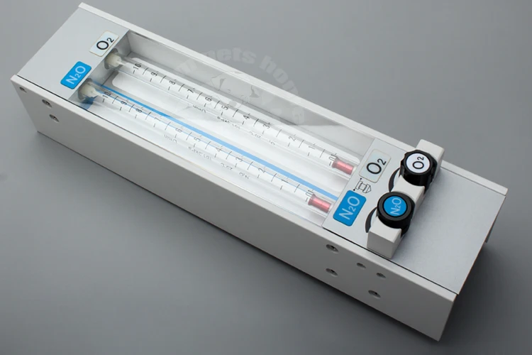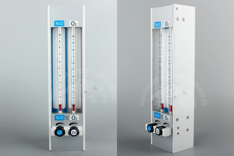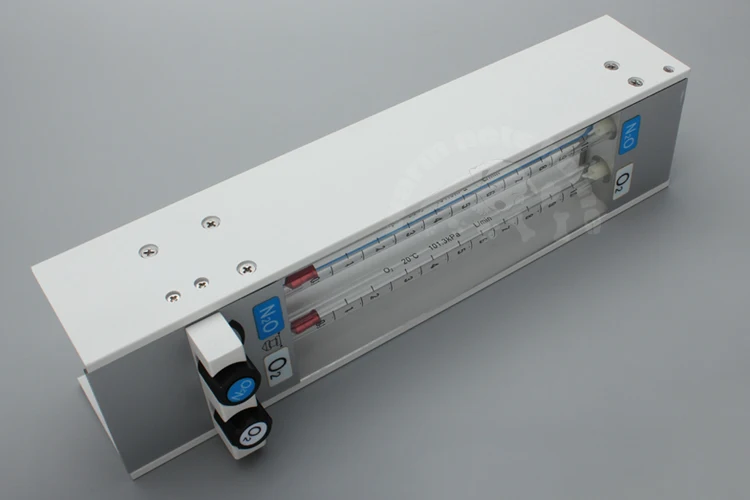 Caudalímetro de doble tubo: N2O 1-10L/min, O2 1-10L/min