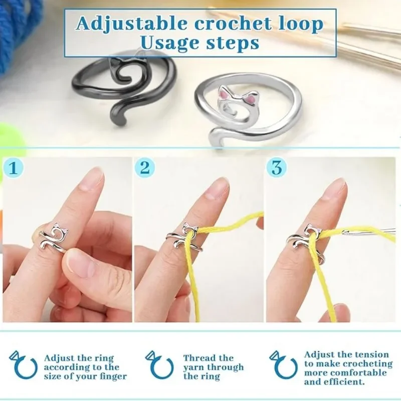 3. La forma de este anillo de crochet de acero inoxidable está hecha de gatos lindos. No solo se puede usar al crochet, sino que también estos exquisitos y con forma única se pueden usar como adornos para los dedos para decorar su vida diaria.
