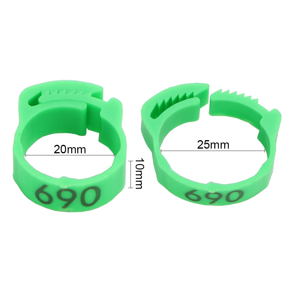 El anillo de identificación de aves de corral adopta un diseño de 6 ranuras, que se puede ajustar a un tamaño adecuado de acuerdo con el grosor de las patas de aves de corral. Puede ponerse y quitar fácilmente estos anillos de identificación.