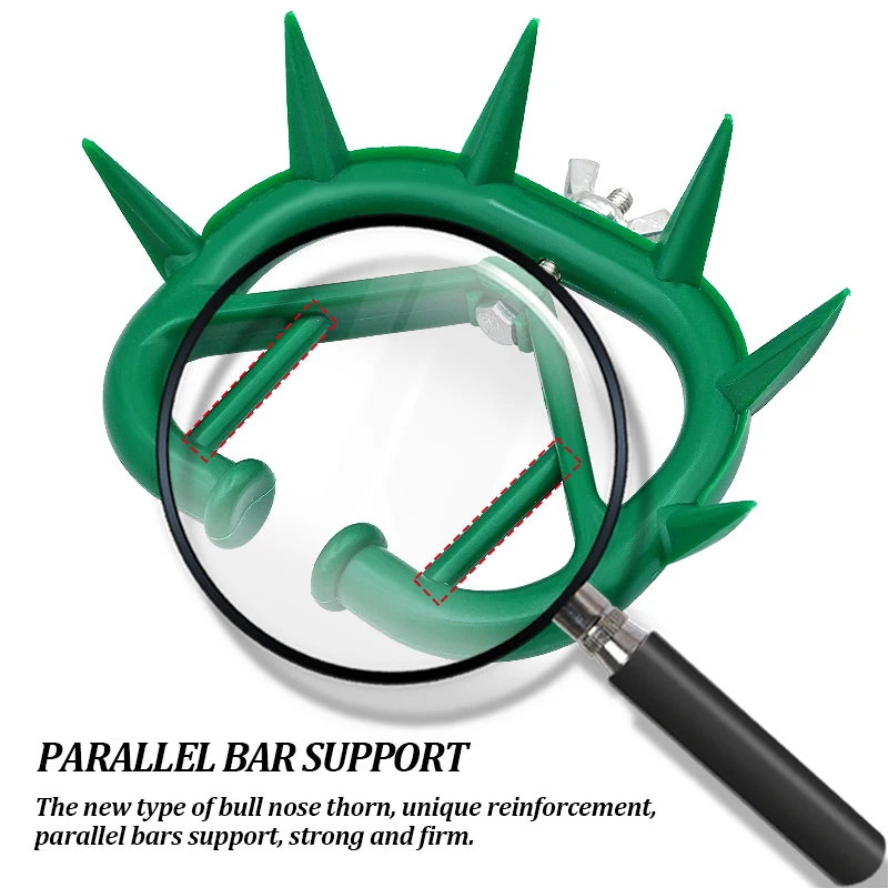 Fabricación de materias primas de alta calidad, buena elasticidad, más duradera, para ayudar a que el destete sea más efectivoPlástico de alta calidad resistente al desgaste, seguro, no tóxico, duradero, rentableNuevo diseño, puede evitar eficazmente que el ganado estire la lenguaUtilizado principalmente para el destete de terneros, este producto se usará en la nariz de la pantorrilla, cuando el ternero coma, la nariz apuñalará a la vaca, la vaca no permitirá que el ternero se alimente.Fácil de operar, puede ayudar rápida y eficazmente al destete DE LOS Mavericks