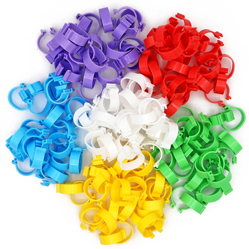 Anillos de pie de pollo para piezas, 6 colores, herramientas de transporte, logotipo de alimentación, pato, Paloma, gansos, codorniz, 100