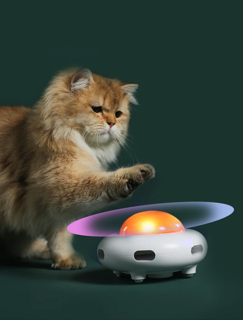 Pluma y gato juegan escondidos y buscan.Los movimientos de las plumas aparecen aleatoriamente para satisfacer la naturaleza de caza del gato y hacerlo más animado.