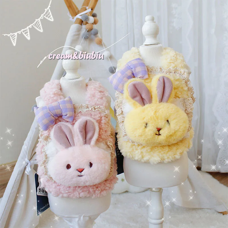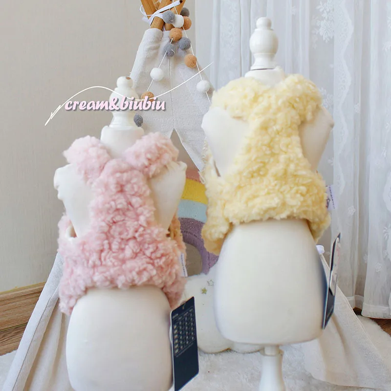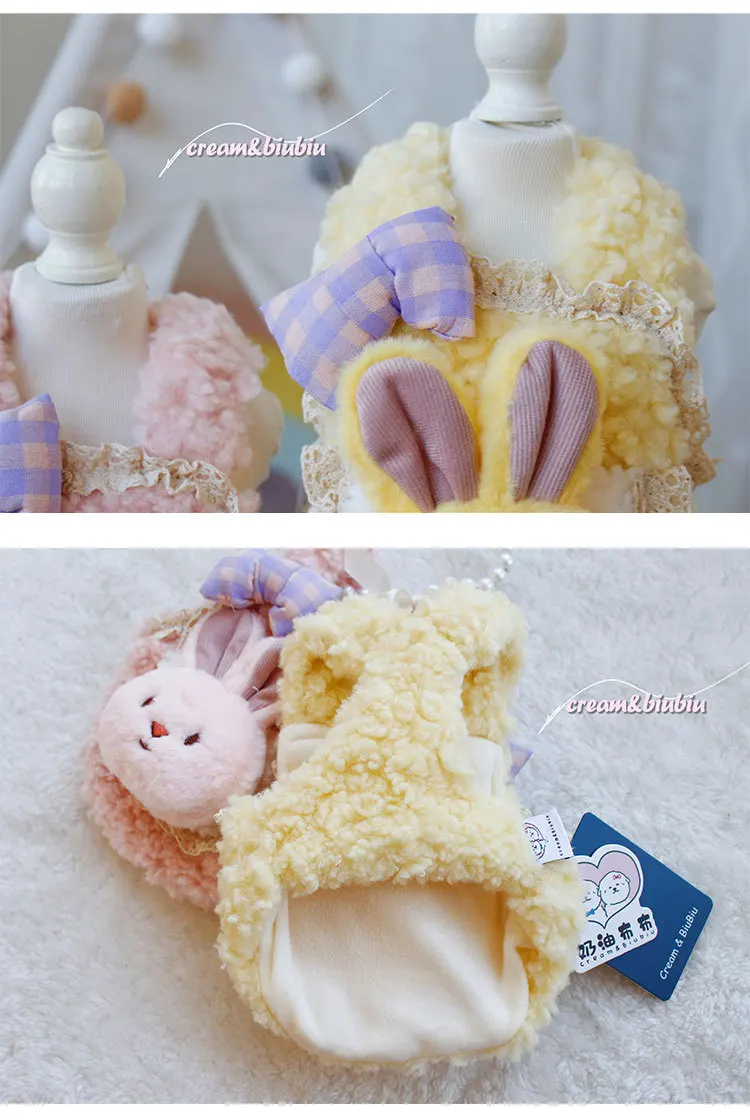 Animal de estimação Otoño/Invierno juguete con cabeza de conejo pequeño chaleco con correa de felpa con falda de correa de felpa ropa para perros pequeños ropa para cachorros