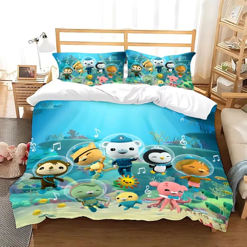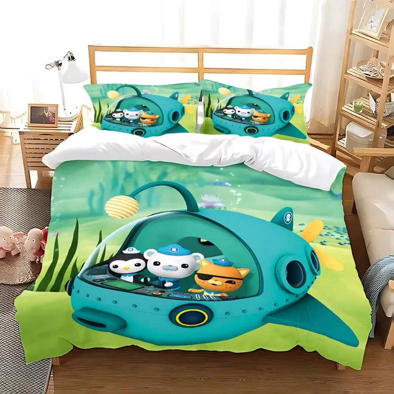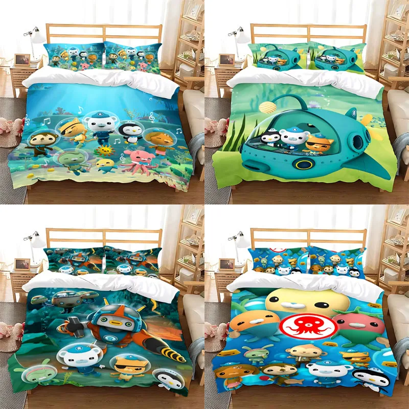 Juego de cama de Anime Octonauts, funda de edredón, funda de almohada con decoración de dibujos animados, funda nórdica para dormitorio, ropa de cama, regalo de cumpleaños para niños