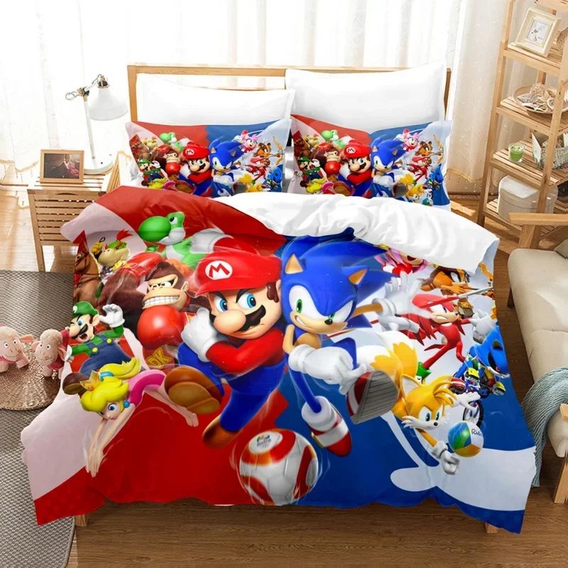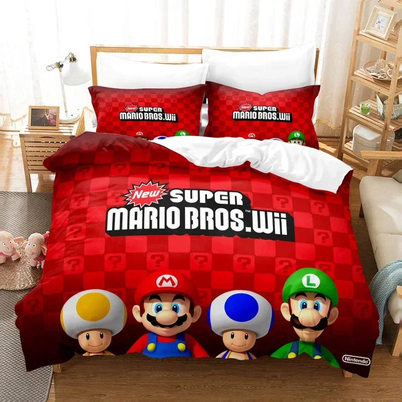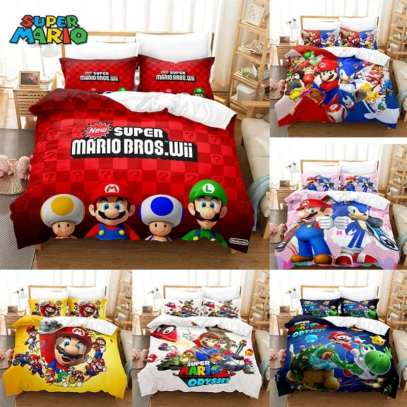 Juego de cama de Anime Super Marios Bros, funda de edredón, funda de almohada, decoración de dibujos animados, funda nórdica para dormitorio, ropa de cama, regalo para niños