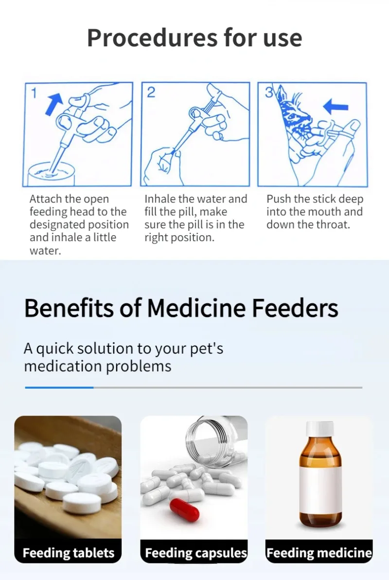 Aplicador de píldoras para mascotas, jeringa para gatos y perros, alimentador de medicina, repelente de insectos, suministros, puede Clip, alimentador de agua para mascotas