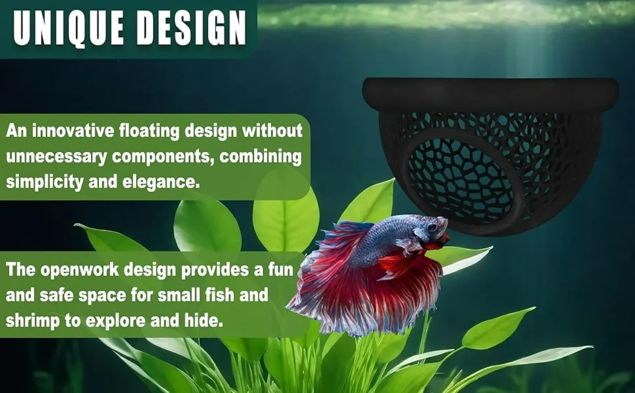 Diseño todo en uno para mejorar las cremas y los camarones: combina una cueva flotante, una hamaca para peces y un anillo de alimentación incorporado para mejorar el enriquecimiento acuático.Descanso y alimentador de superficie flotante: el diseño flotante permite que los peces descansen cerca de la superficie y se alimenten fácilmente; reduce el desperdicio de alimentos con el anillo flotante integrado.Hecho de material no tóxico y apto para acuarios.Este diseño duradero y ecológico garantiza que la calidad del agua se conserve en todo tipo de tanques.Enriquece el entorno del tanque: fomenta los comportamientos naturales de Betta como esconder, anidar y desarrollar nidos de burbujas mientras hace que su tanque sea más dinámico visualmente.Pequeño: (Dia.)7cm x (alto)4cmGrande: (Dia.)10 cm x (alto) 5,6 cmTamaño en la apertura: perfecto para nanocueros y peces pequeños, diseñado para prevenir el estrés y los riesgos de escape.