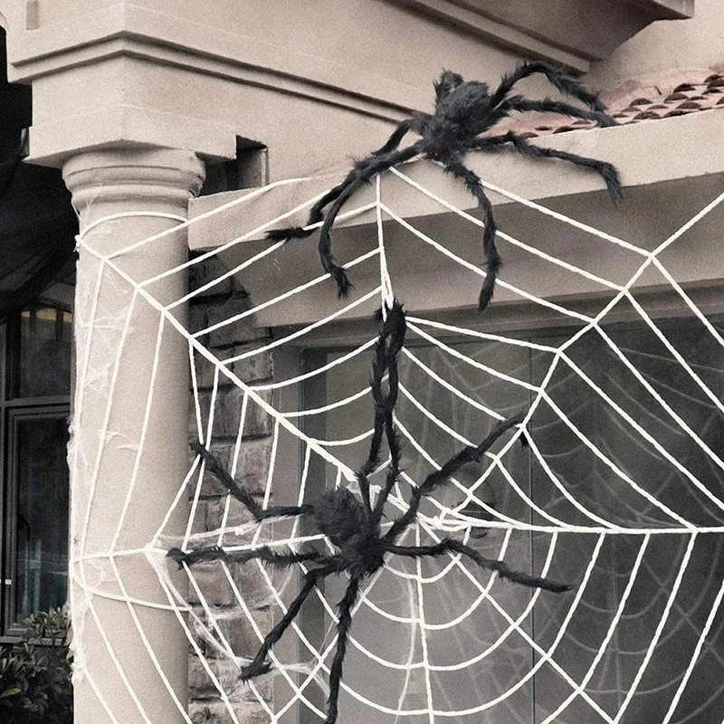 100% producto exterior. Después de probar más de 90 días de lluvia y viento, las arañas aún se mantienen bien juntas. Simplemente coloque las arañas peludas falsas en cualquier lugar que desee decorar, en interiores, en el patio, en telas de araña o puertas.