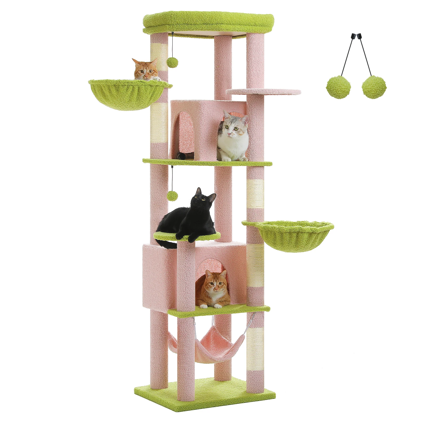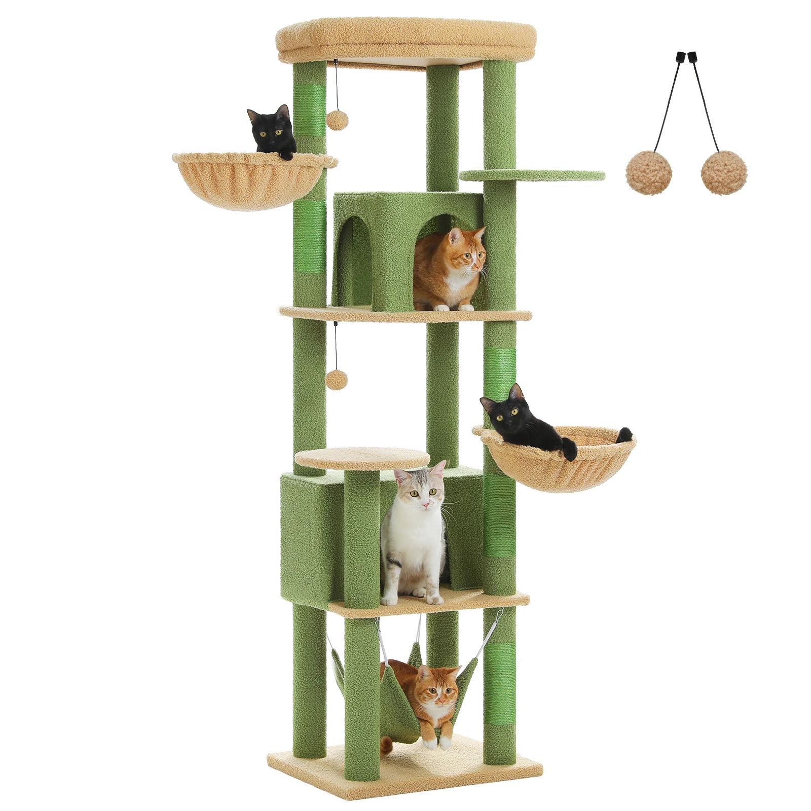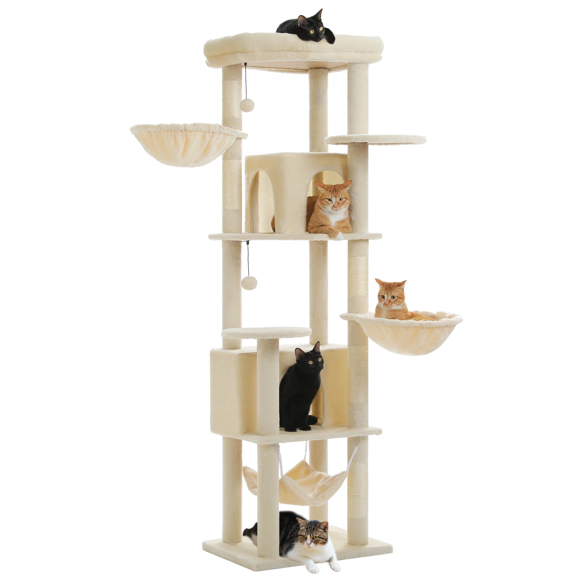 Árbol para gatos alto para gatos grandes de interior, torre para gatos de felpa de varios niveles con poste para rascar de sisal, condominios espaciosos, hamaca acogedora, juguetes para gatos