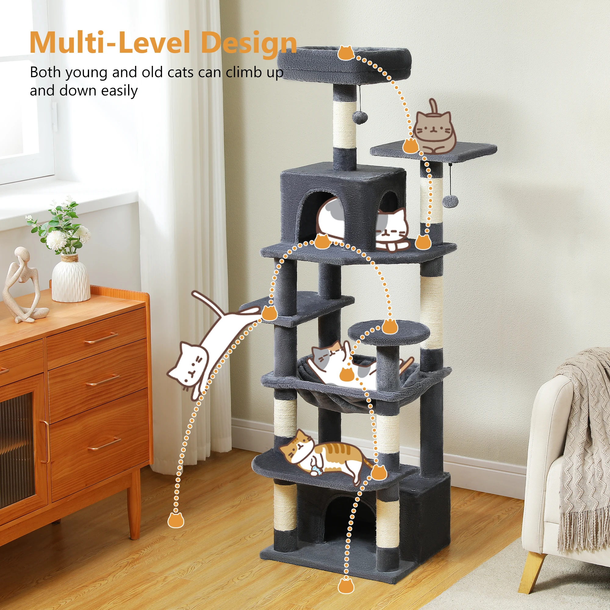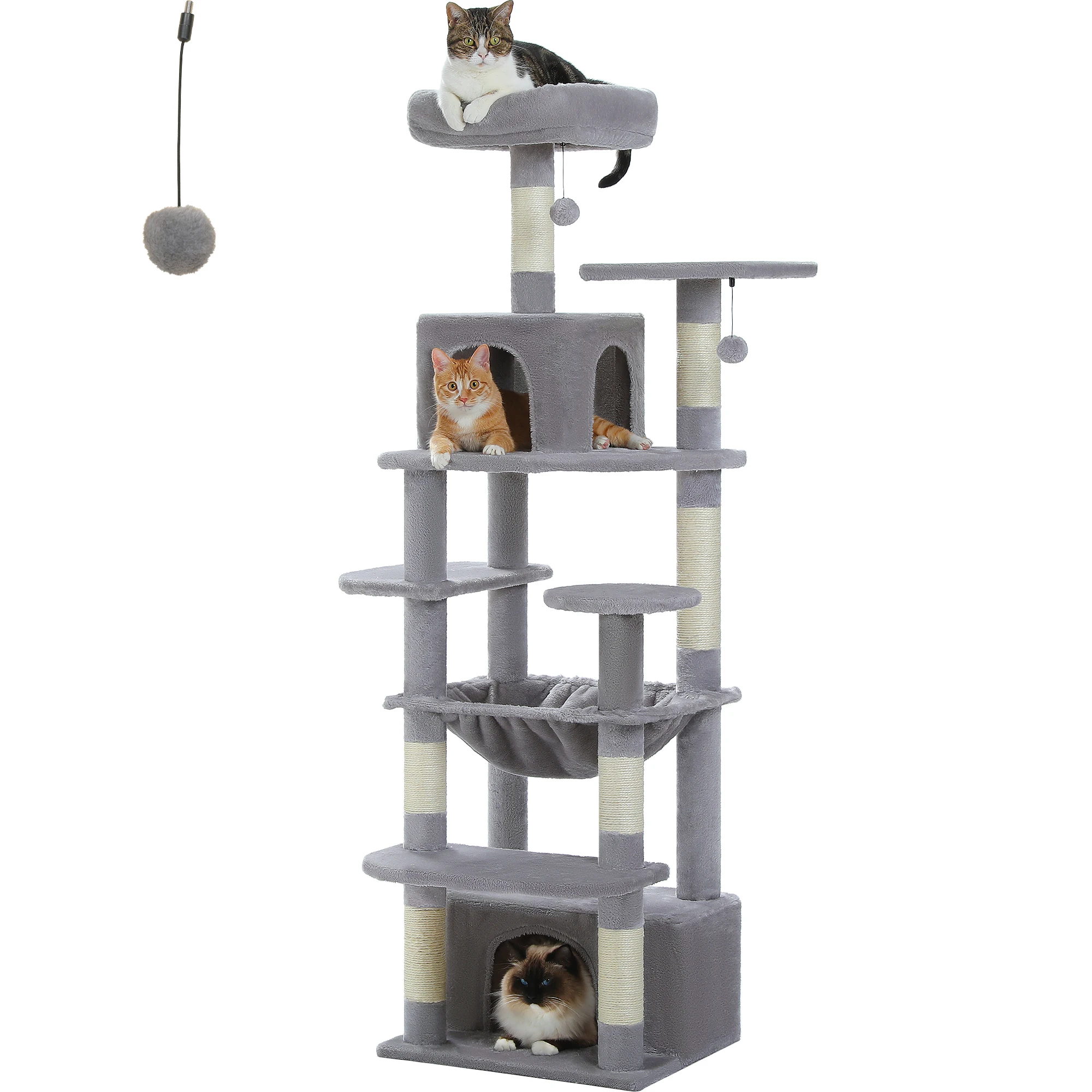 Árbol para gatos alto con postes para rascar, hamacas espaciosos, condominios grandes, torre para gatos grande para rascador de gatos de interior, accesorios de juguetes para gatos