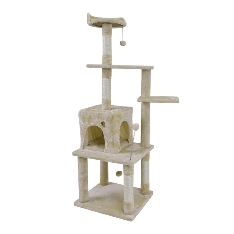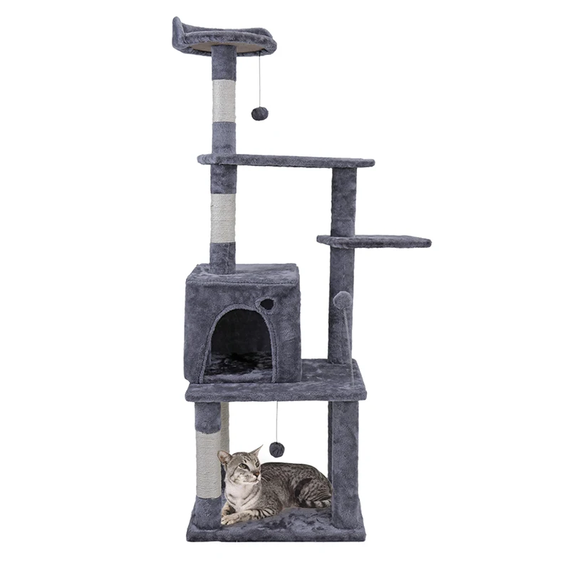 Tamaño del producto:54,7 "de altura, este árbol para gatos puede proporcionar suficiente espacio para gatos de diferentes tamaños; Montaje rápido y simple con tornillos.