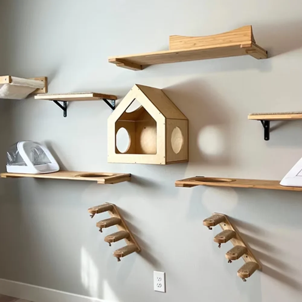 El diseño montado en la pared ahorra espacio en su habitación y es muy adecuado para escalar, dormir y hacer ejercicio.Apto para gatos de todas las edades.