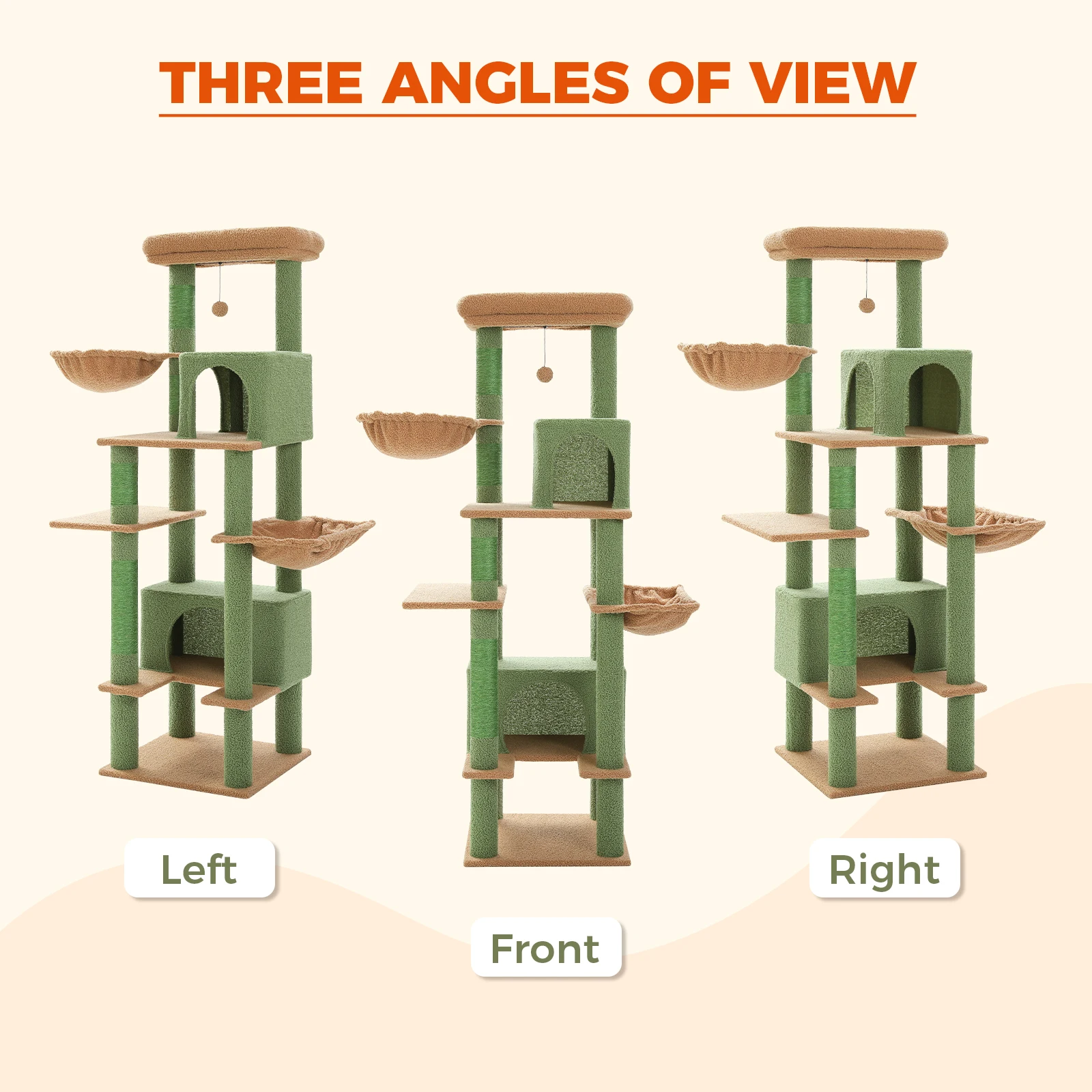 Ideal para gatos grandes:Este árbol para gatos de 66" está especialmente diseñado para gatos grandes y adultos (peso de 20 libras), con condones espaciosos para gatos, una hamaca cuadrada ancha y una cuna ampliada para adaptarse cómodamente al tamaño y la actividad de los gatos grandes.