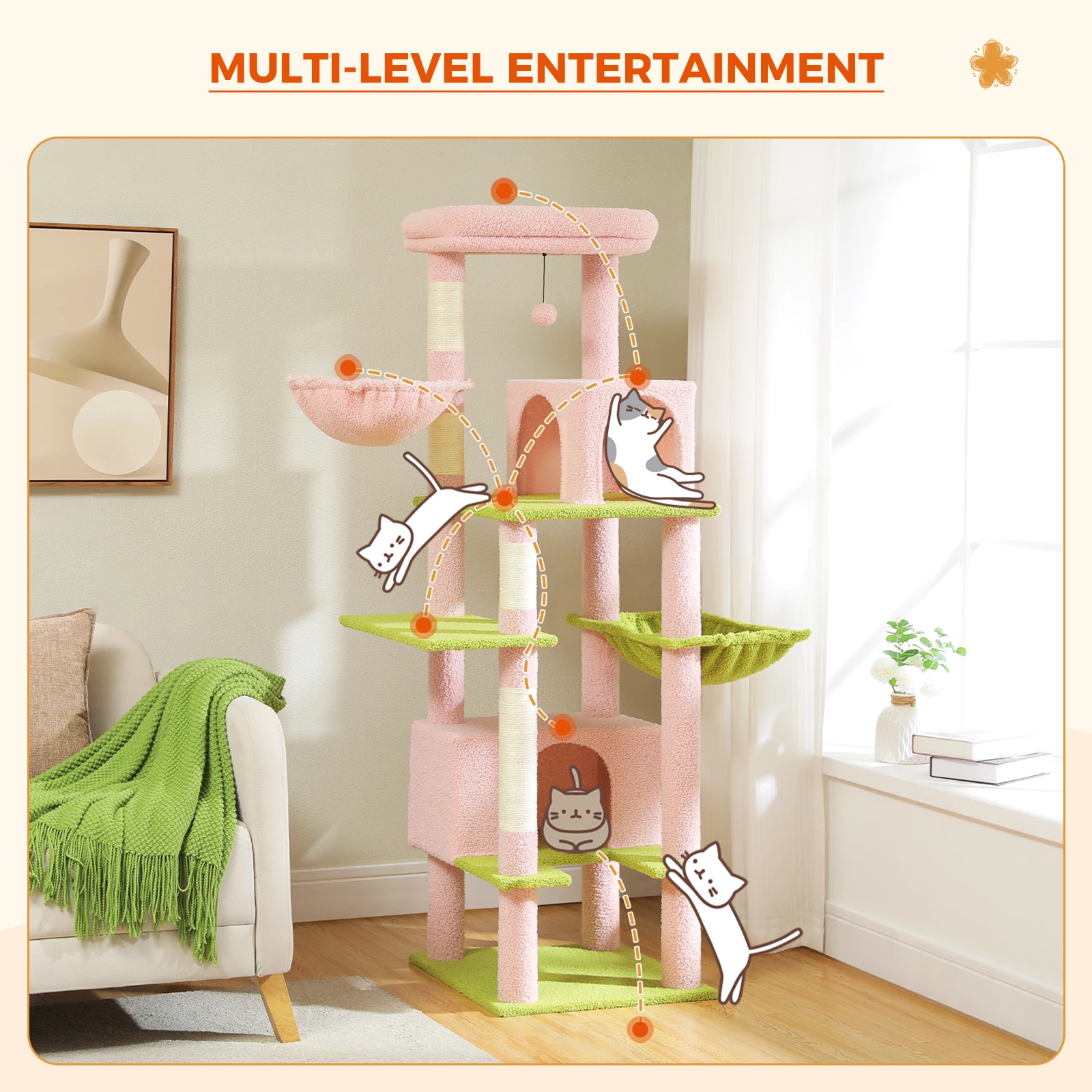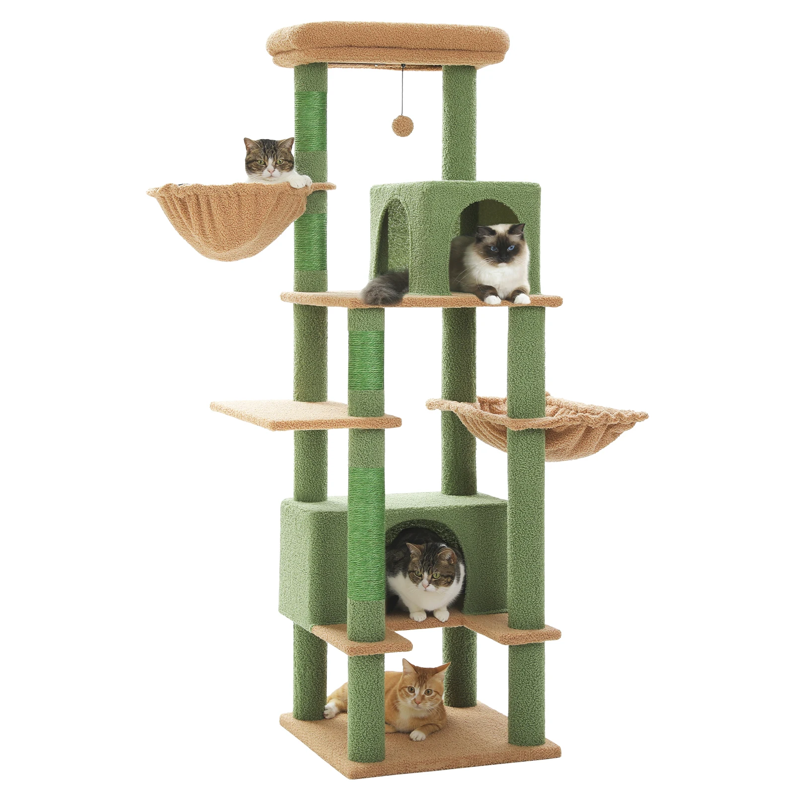 Árbol para gatos de cactus de varios niveles para gatos de interior, torre para gatos grande con poste para rascar de sisal, dos condones grandes y hamaca súper grande, juguetes para gatos