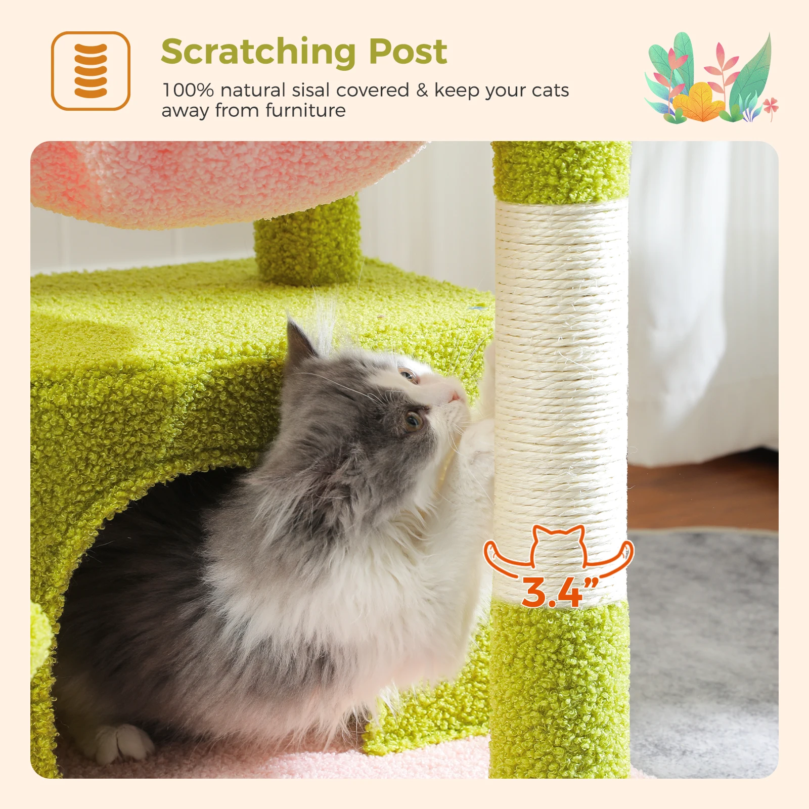 Todo por seguridad:La estructura robusta de este árbol para gatos de cactus proporciona un lugar seguro y acogedor para que sus gatos jueguen y descansen.Además, una punta antivuelco debajo de la percha superior permite un doble seguro para toda la estabilidad del árbol para gatos.
