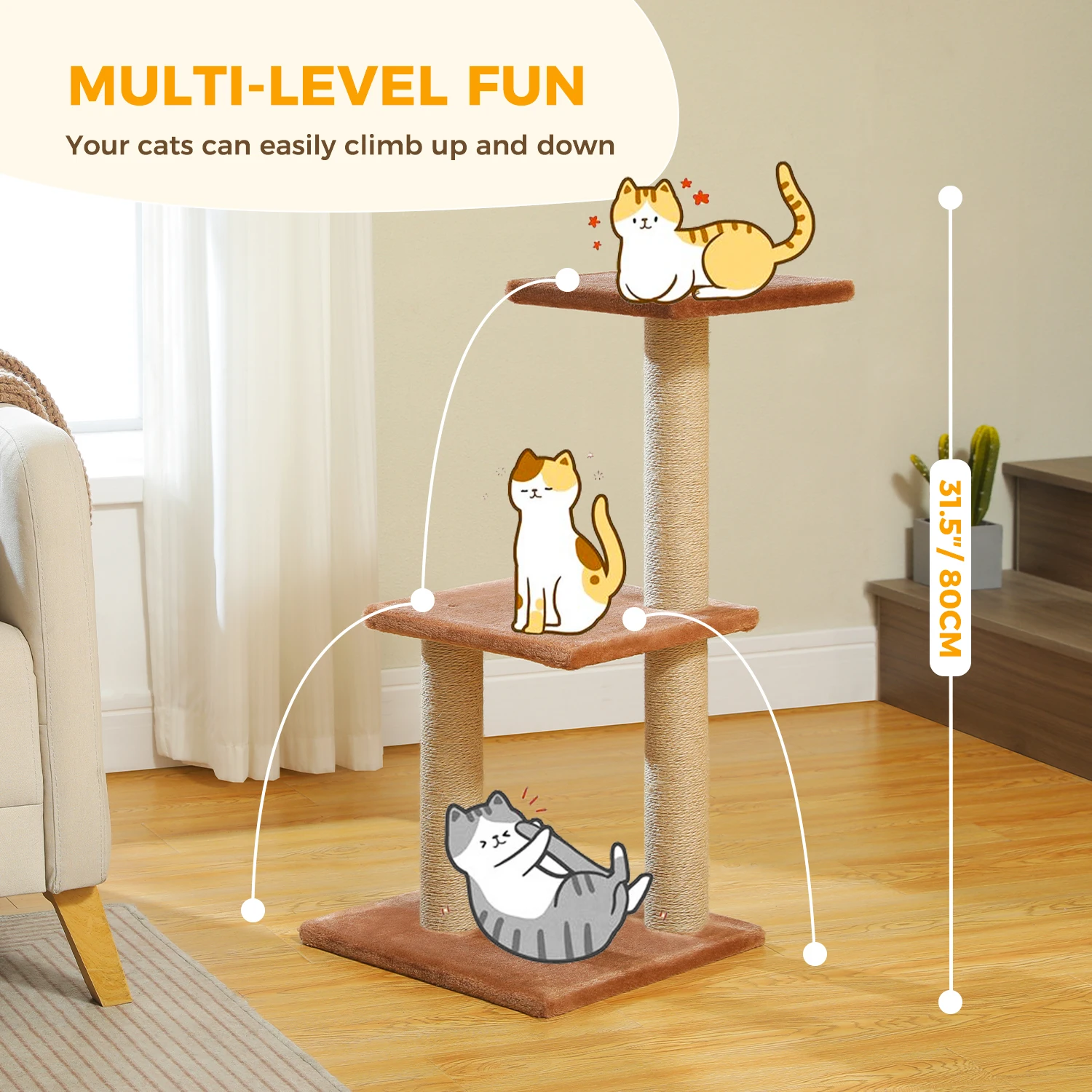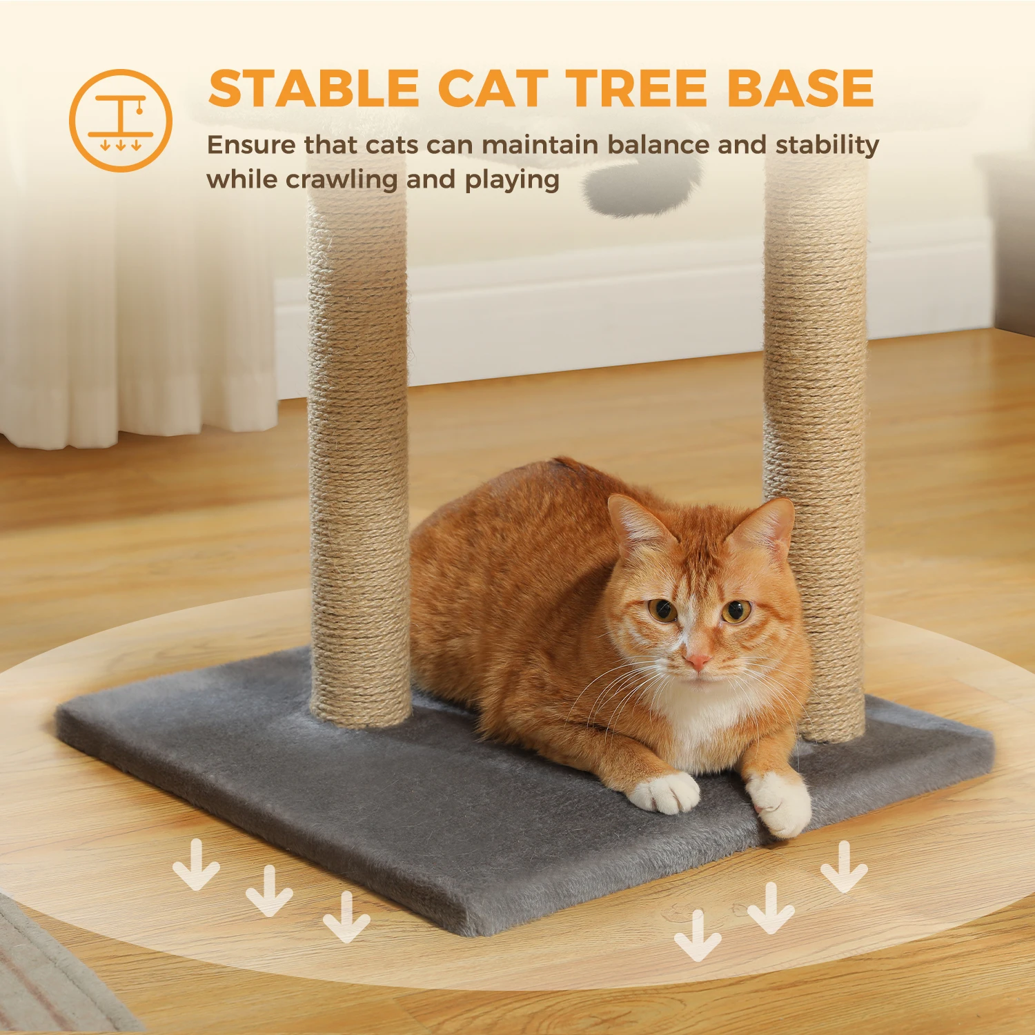 Torre para gatos de varios niveles con árbol para gatos de 80 cm con 3 postes para rascar y base estable para árbol para gatos adecuada para 1-2 gatos de interior, gris y marrón