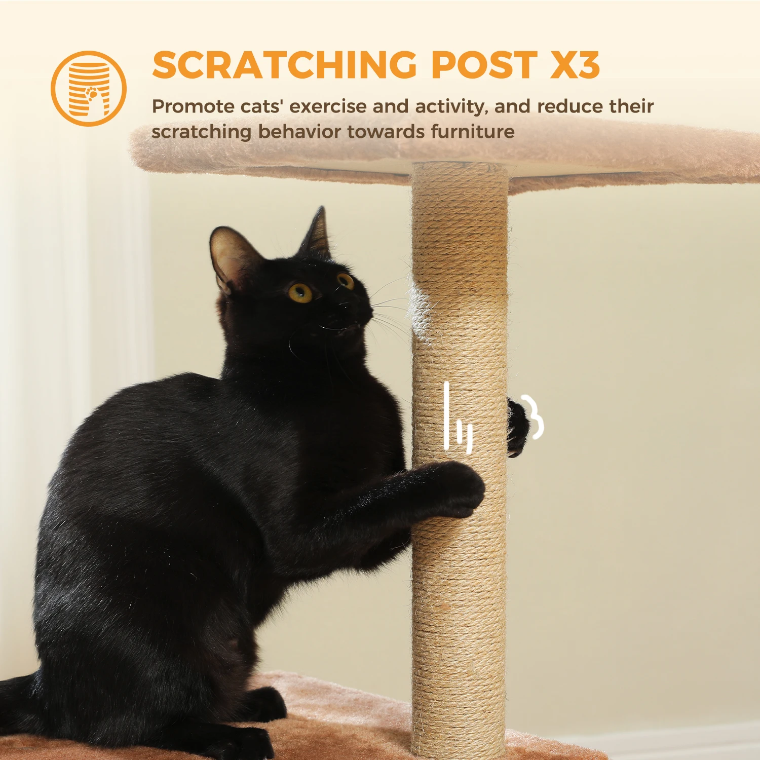 Equipada con tres postes para rascar, esta torre satisface los instintos naturales de su gato mientras mantiene las garras sanas y afiladas.