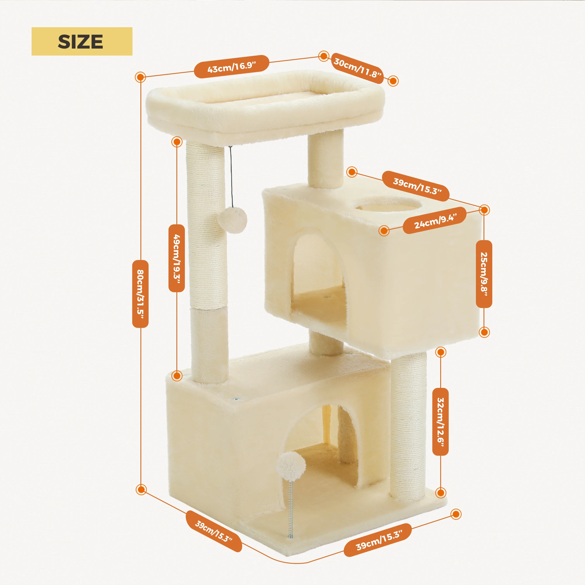 Nombre: árbol para gatos de 82 cm, con percha superior desmontable