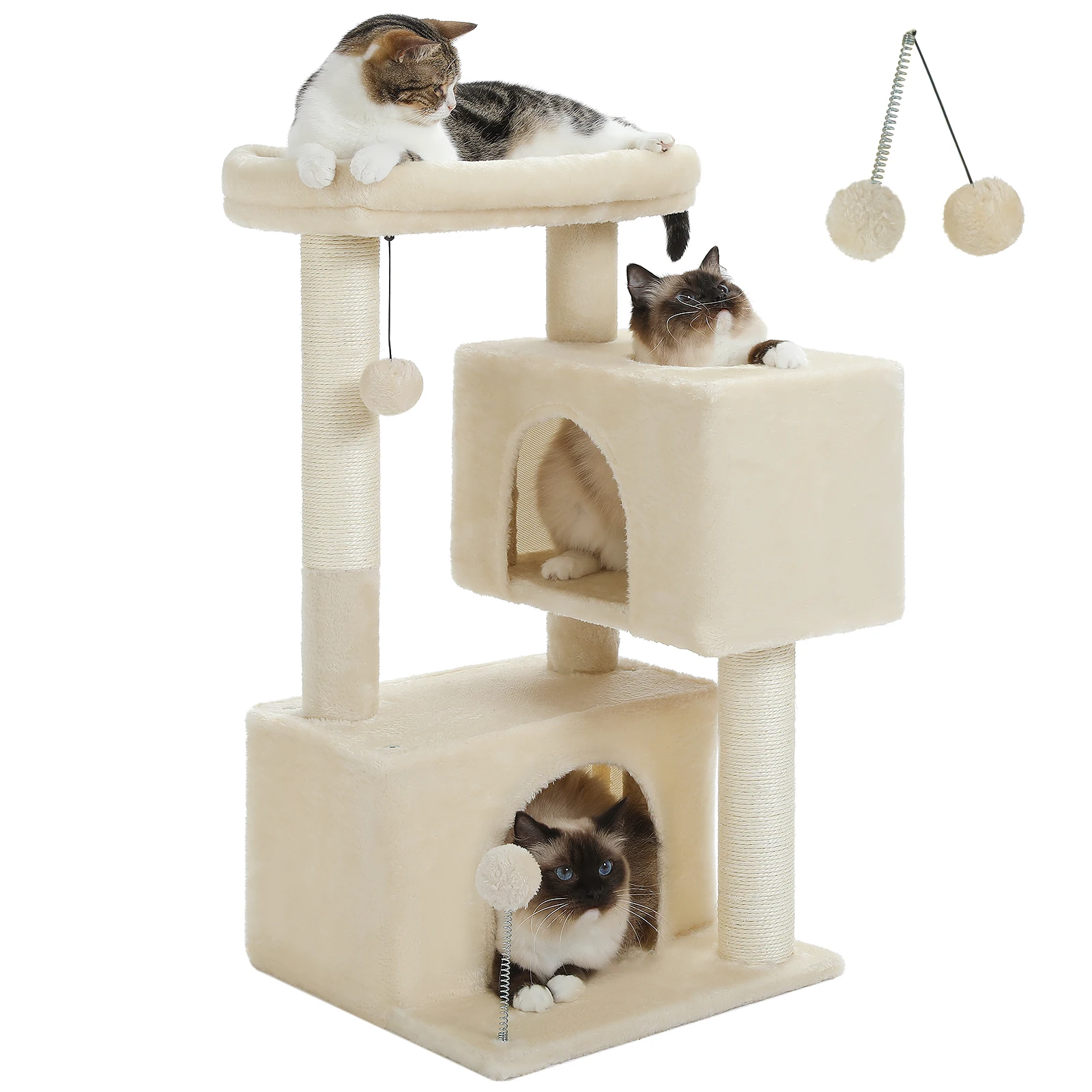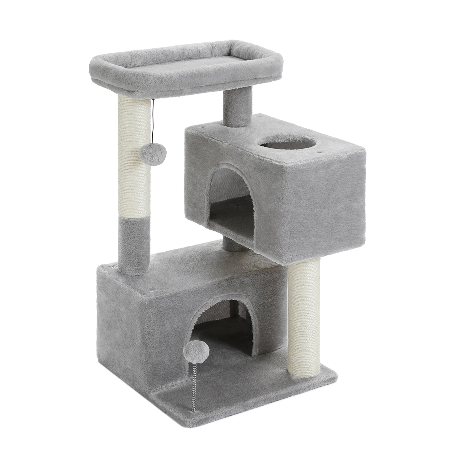 Árbol para gatos de 82 cm, con percha superior desmontable, atractiva bola de resorte interactiva, condominios dobles espaciosos, perfecto para gatos de interior