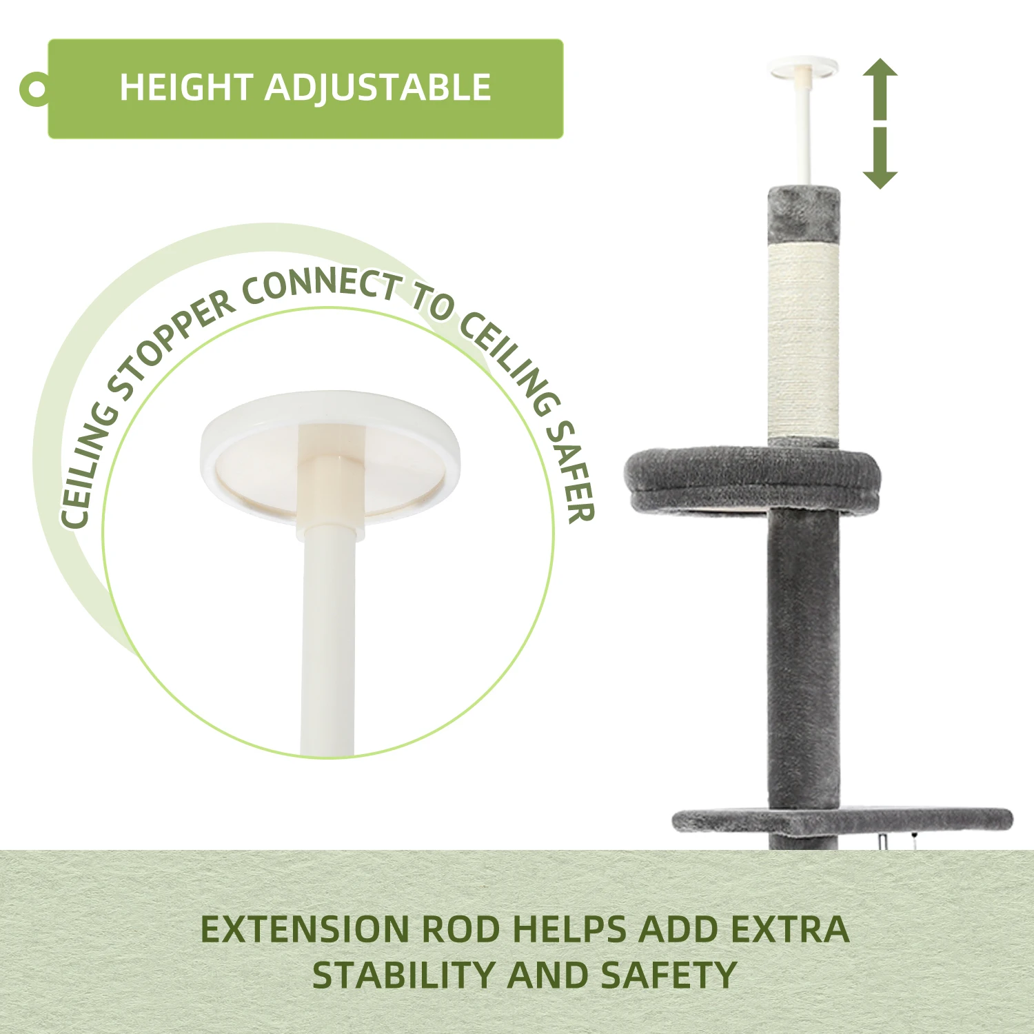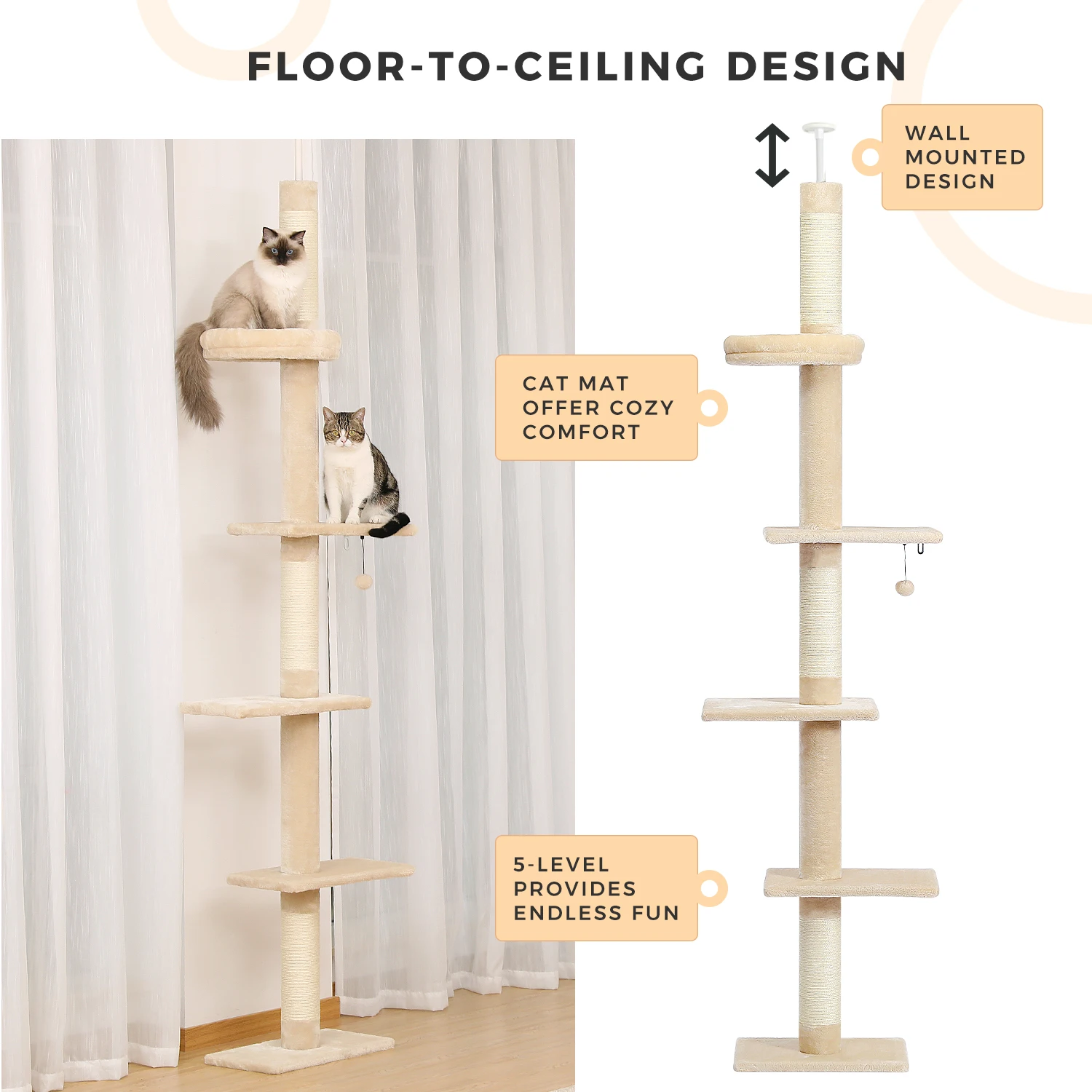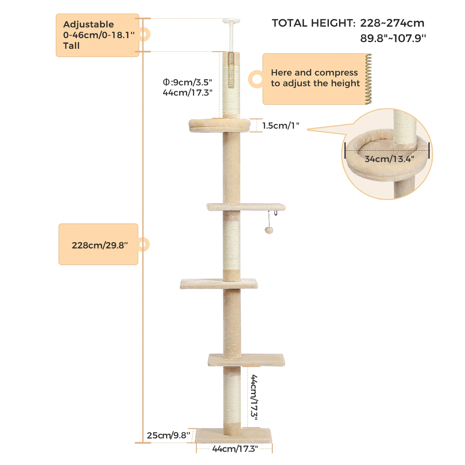 Árbol para gatos ajustable piso a techo centro de actividades de escalada para gatitos de 5 niveles juguete para gatos con poste para rascar muebles para mascotas