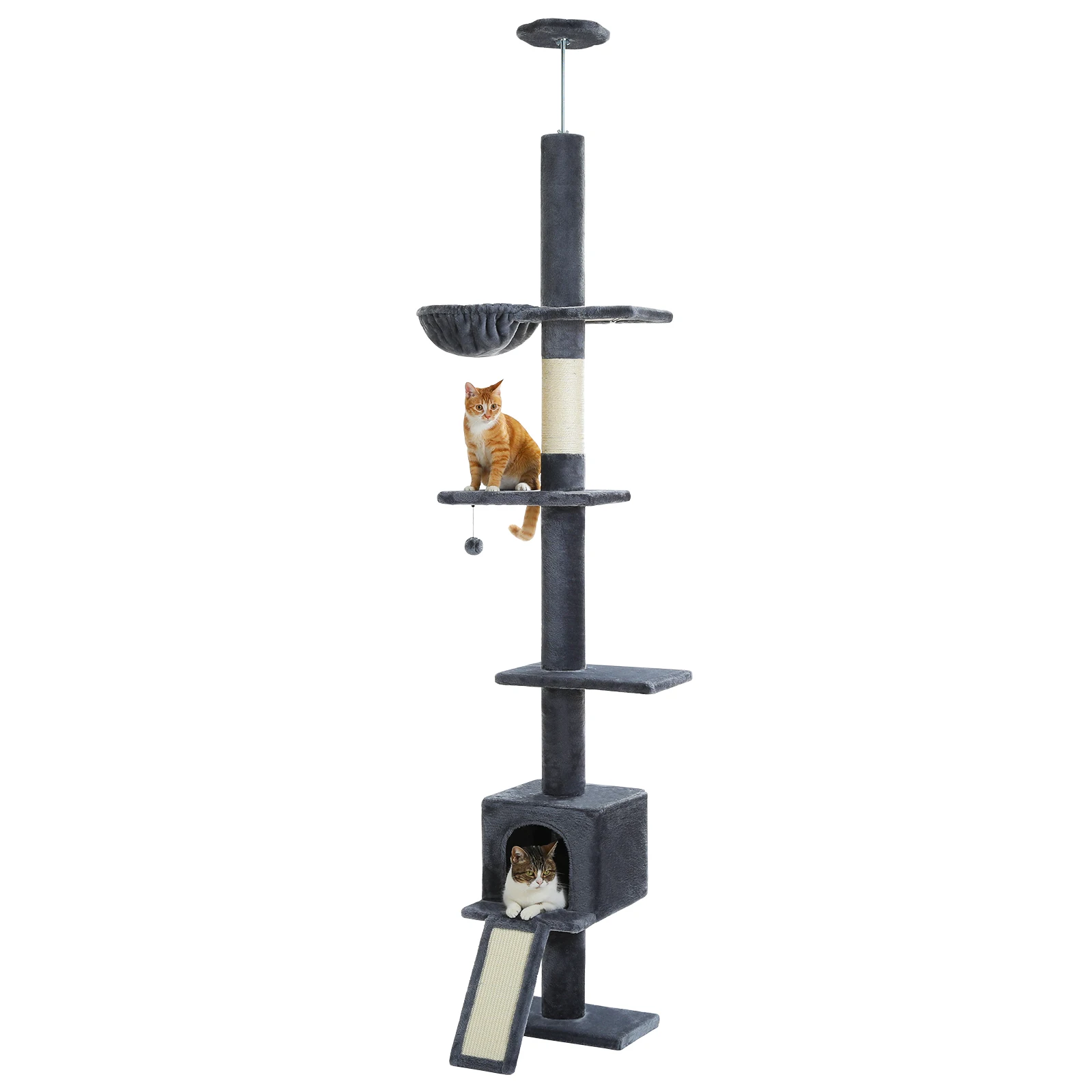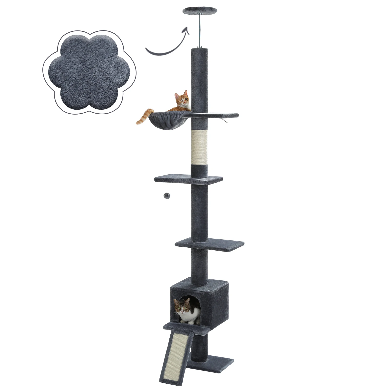 Altura ajustable 210-274 CM Árbol para gatos piso al techo Torre alta para gatos para interiores con acogedor cucharón para rascar de sisal Condo