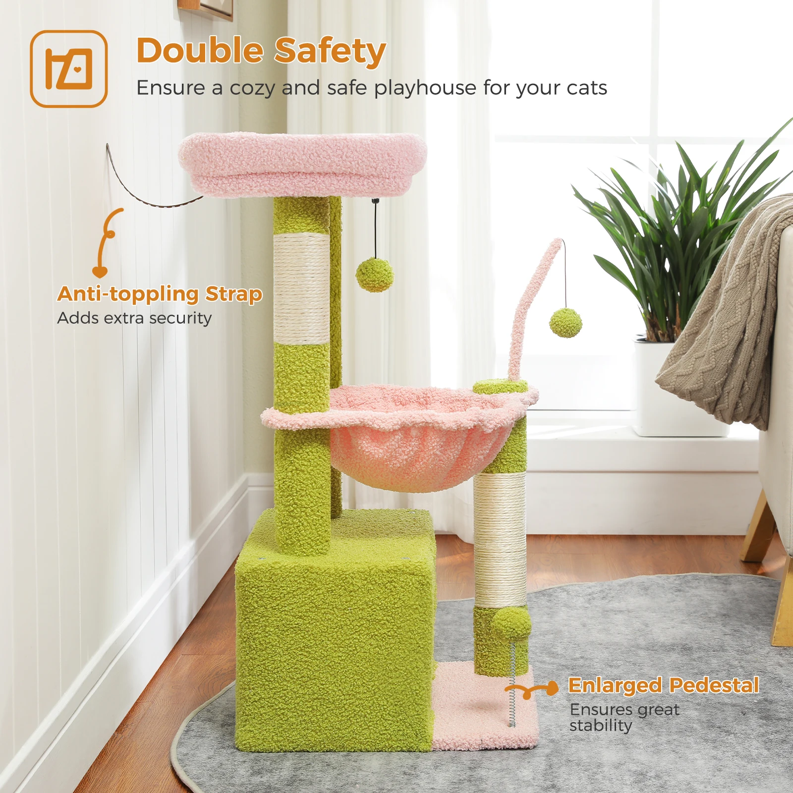 Árbol para gatos de cactus 4 en 1 para gatos de interior, torre para gatos pequeña con condominio grande, poste para rascar, hamaca profunda, percha acogedora, juguetes para gatos