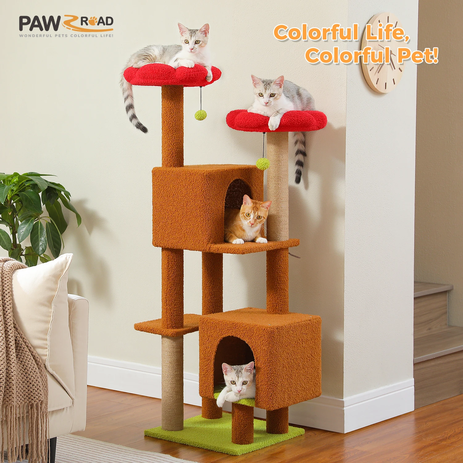 Calidad premium: fabricada con madera de primera calidad reconocida por su durabilidad y estabilidad, esta resistente torre para gatos garantiza un ambiente seguro y confortable para sus mascotas.Los postes rascadores envueltos en sisal se adaptan a sus instintos naturales, protegiendo sus muebles.Este elegante árbol para gatos de interior encaja perfectamente en cualquier hogar, combinando funcionalidad con énfasis en la artesanía superior.