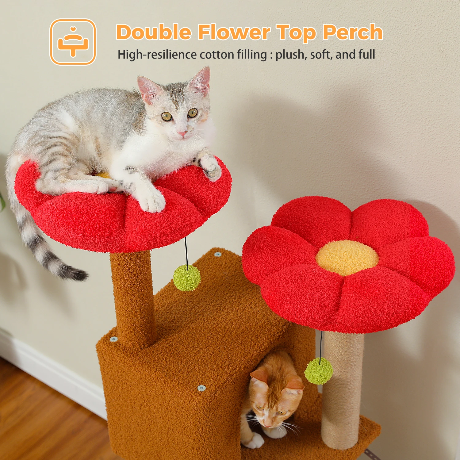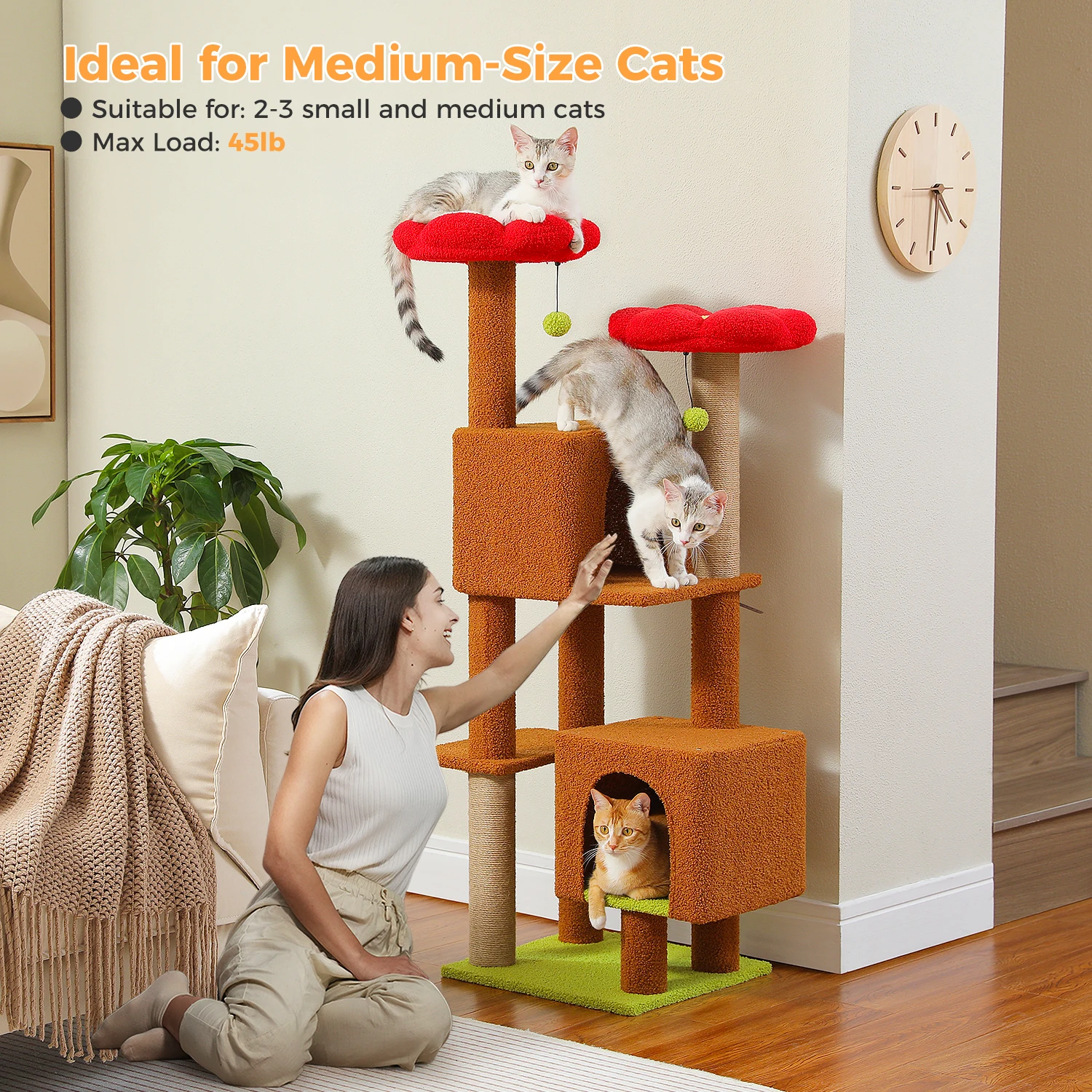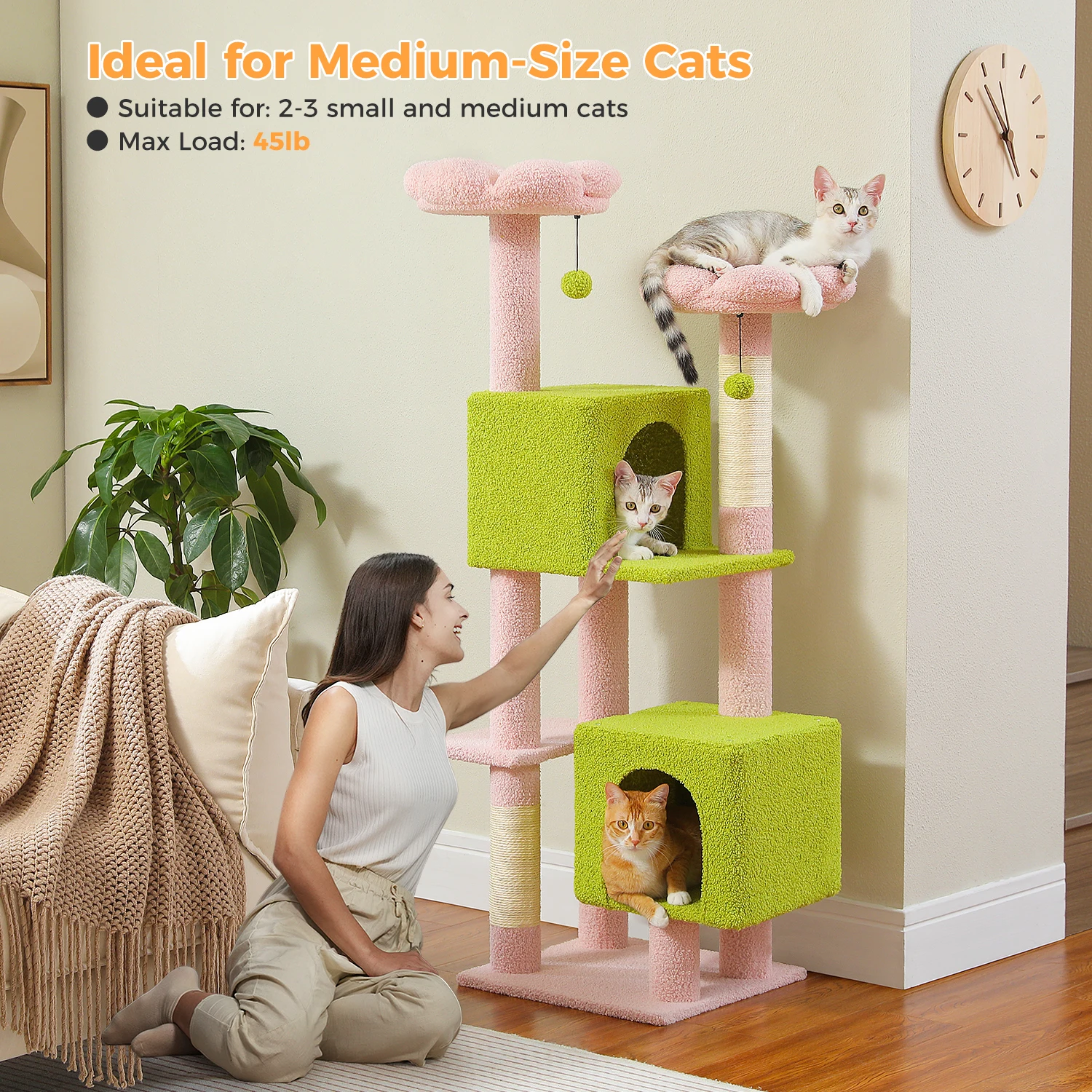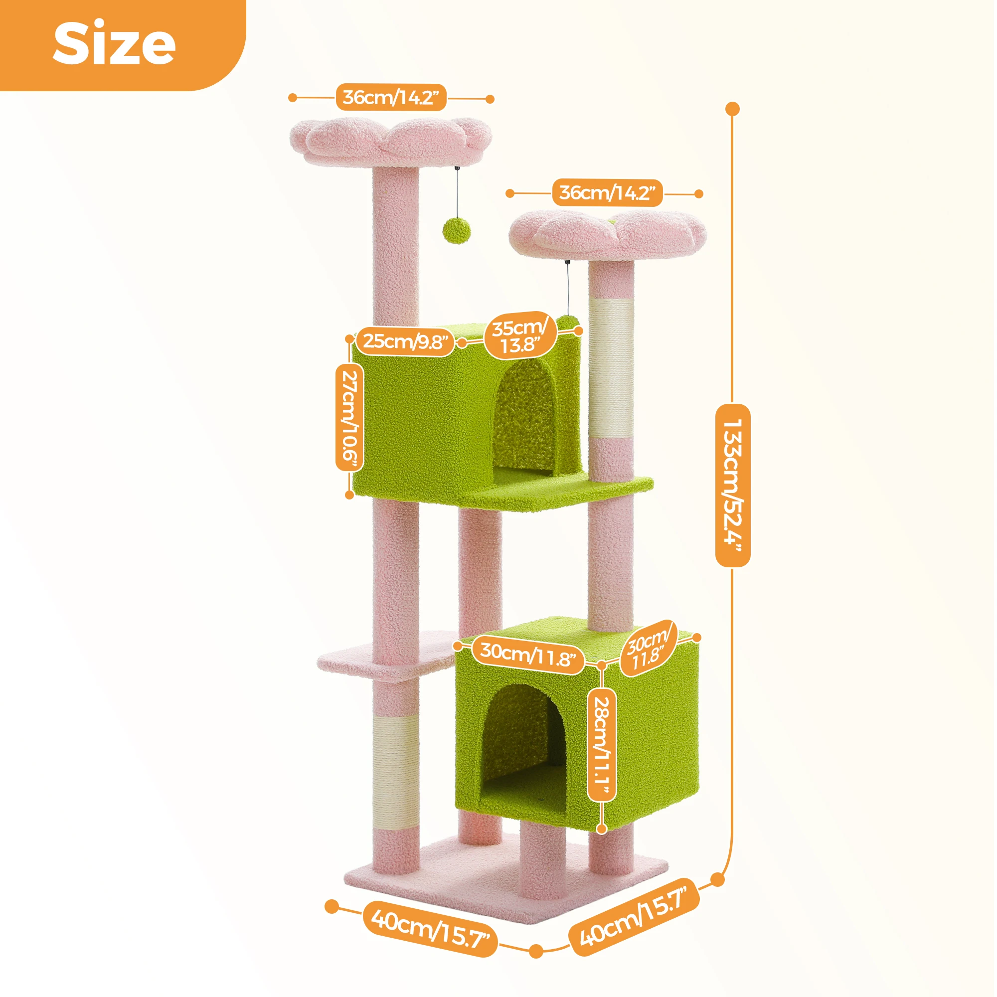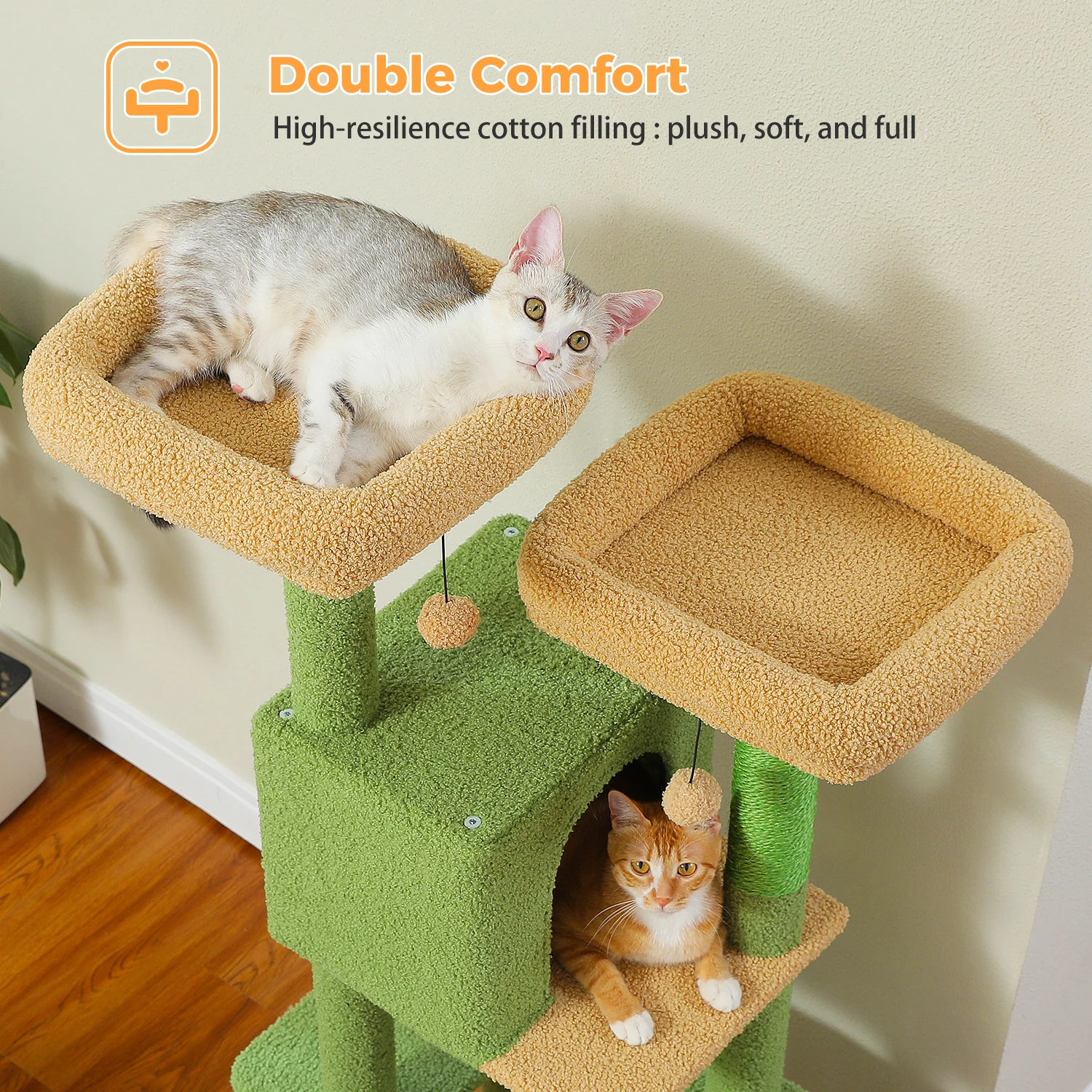 Árbol para gatos de cactus, torre para gatos de 133 cm para gatos de interior, lindo árbol para gatos con 2 perchas acolchadas, 2 condominios y 2 postes para rascar