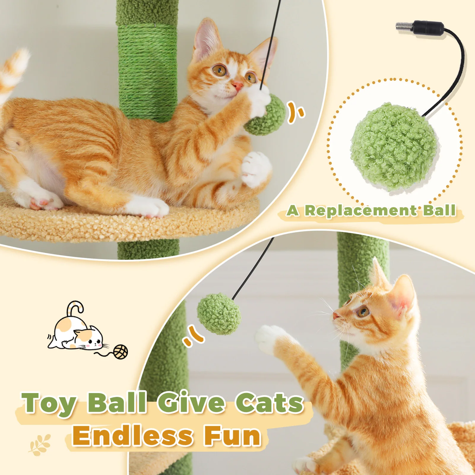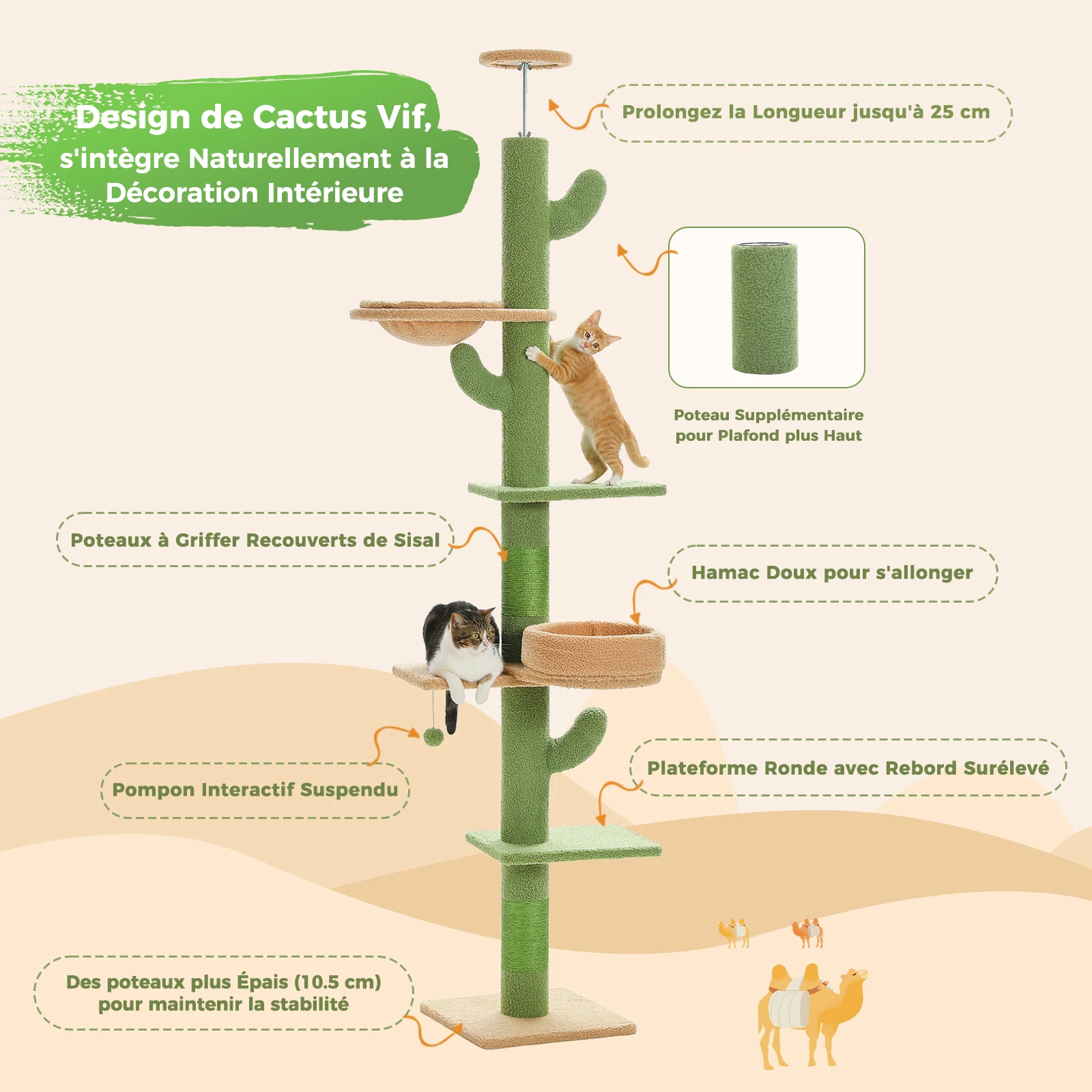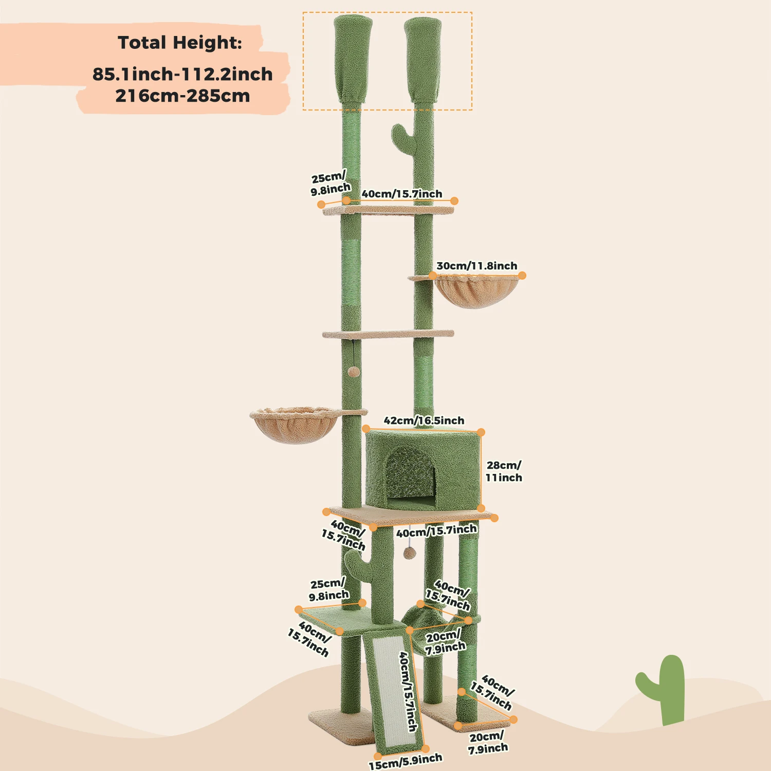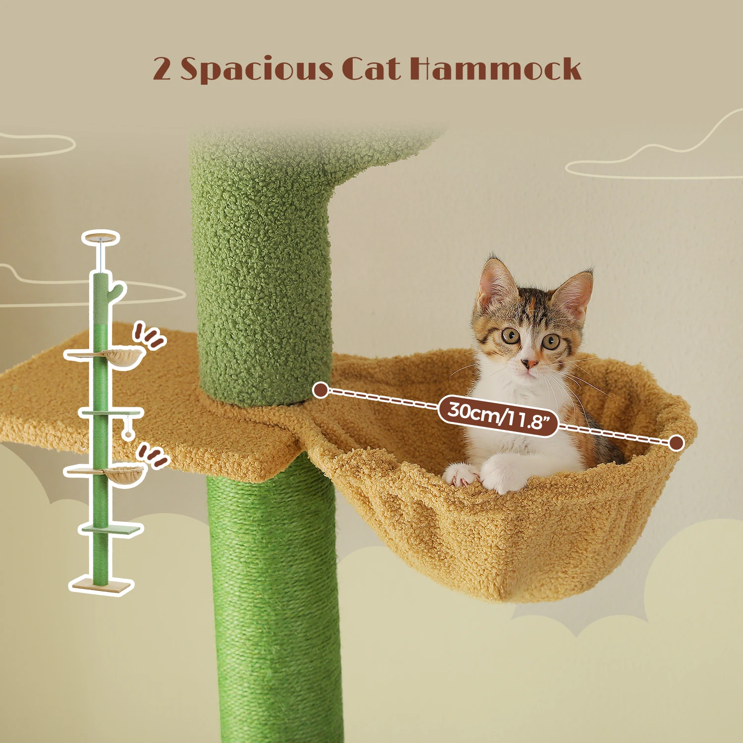 Árbol para gatos de cactus de altura ajustable para gatos de interior, torre para gatos de piso a techo con poste para rascar, hamaca acogedora, bolas colgantes, juguetes para gatos