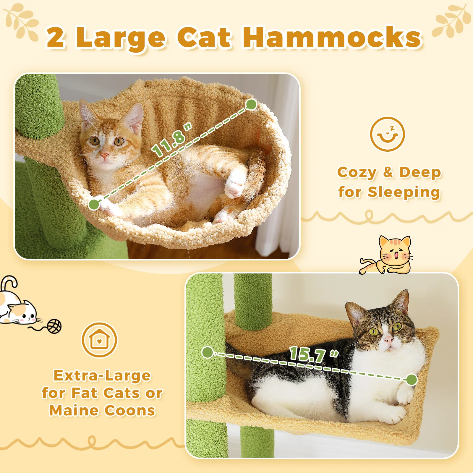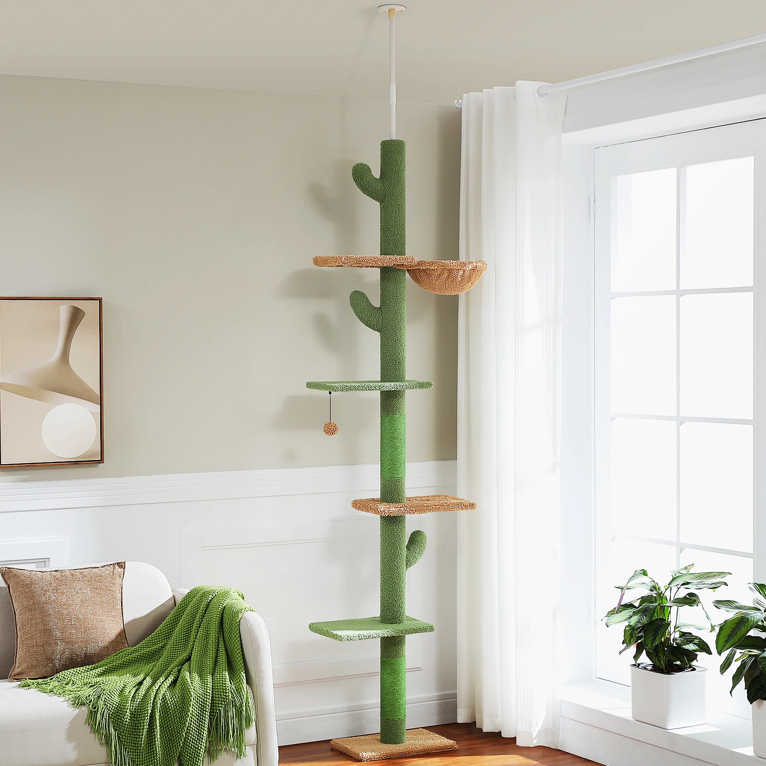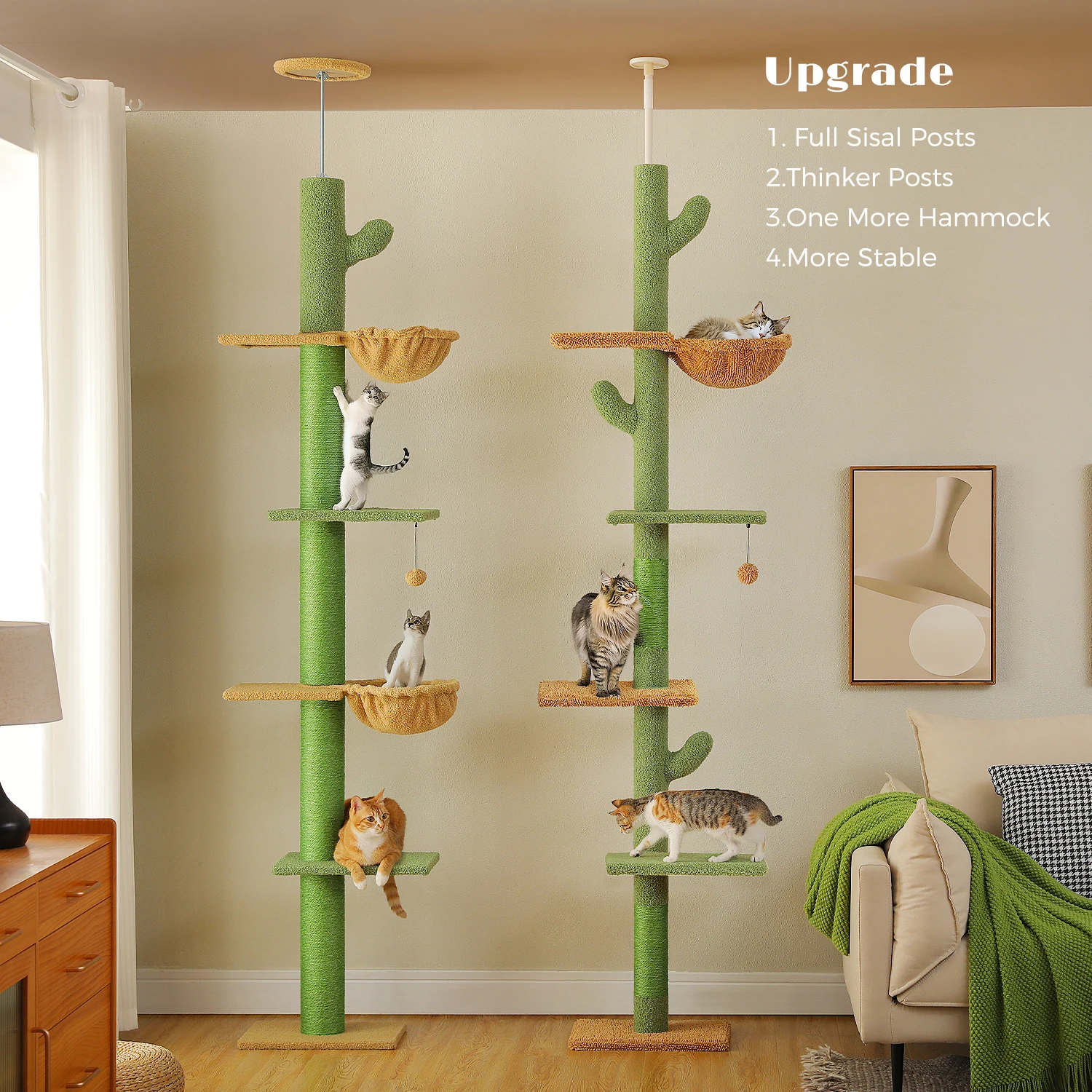 Torre para gatos de piso a techo con árbol para gatos de cactus con poste para rascar de sisal, hamaca cómoda para hogares de varios gatos, accesorios para gatos