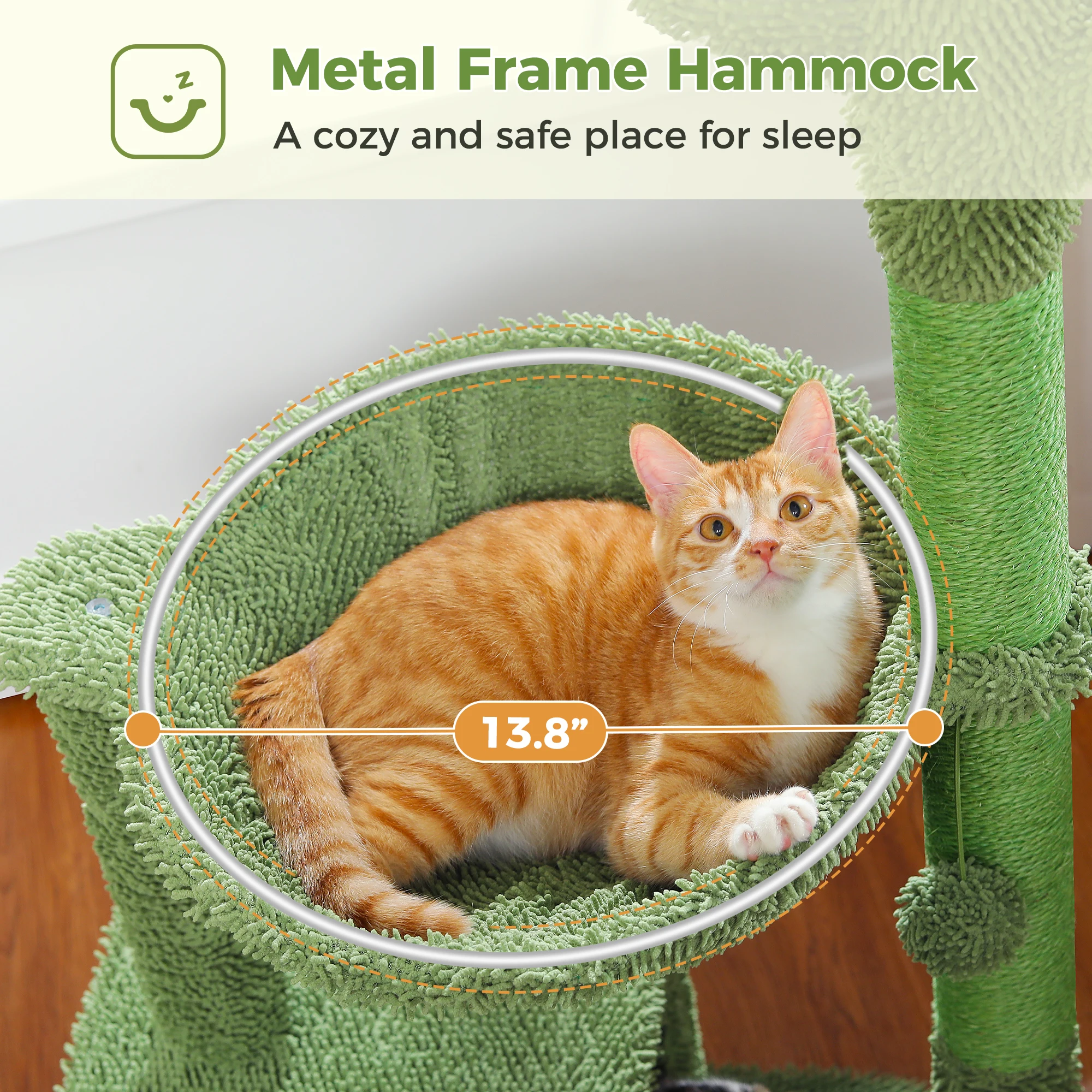 Nombre: Torre de árbol para gatos de cactus con hamaca con estructura de metal.
