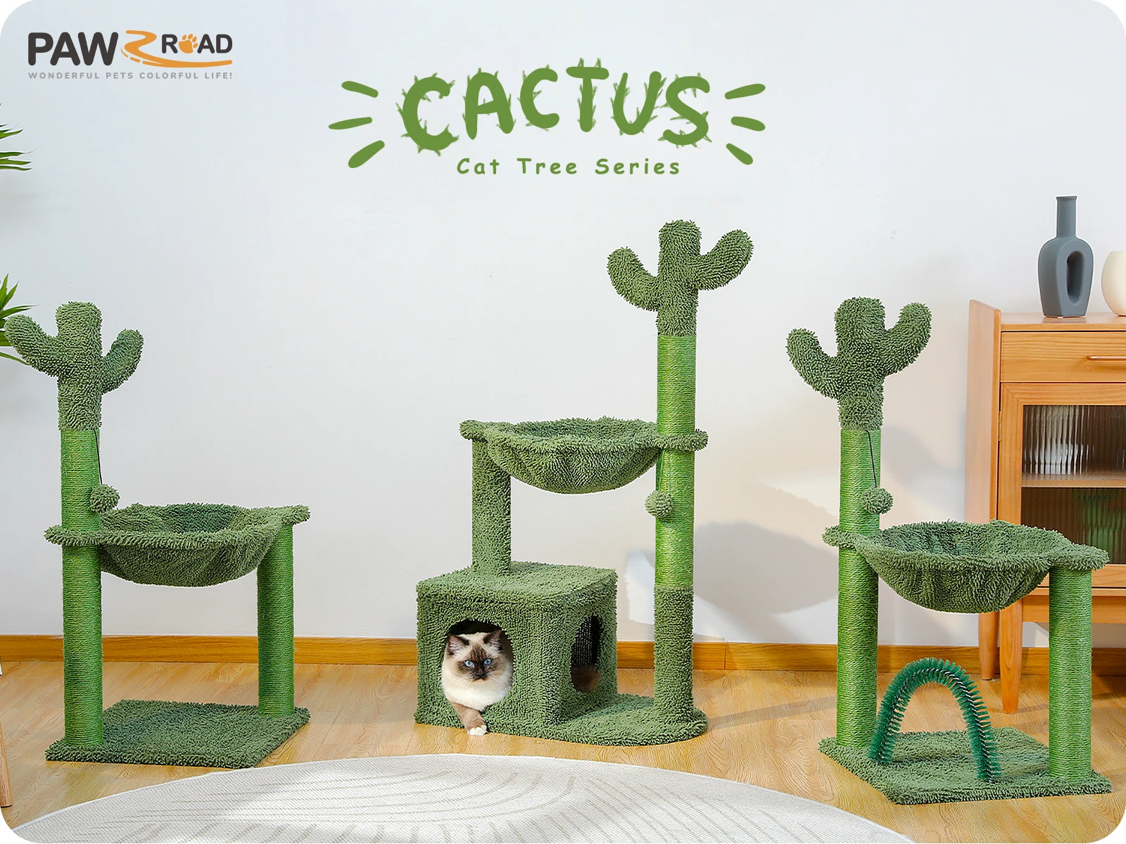 CONSTRUCCIÓN DE CALIDAD El árbol para gatos PAWZ Road Cactus está diseñado para durar, con materiales duraderos y artesanía experta.Tiene capacidad para varios gatos y está diseñado para soportar incluso el juego más activo.FÁCIL MONTAJE Configurar el nuevo parque infantil de su gato es muy sencillo.Las instrucciones claras y las herramientas incluidas hacen que el montaje sea rápido y sin complicaciones.