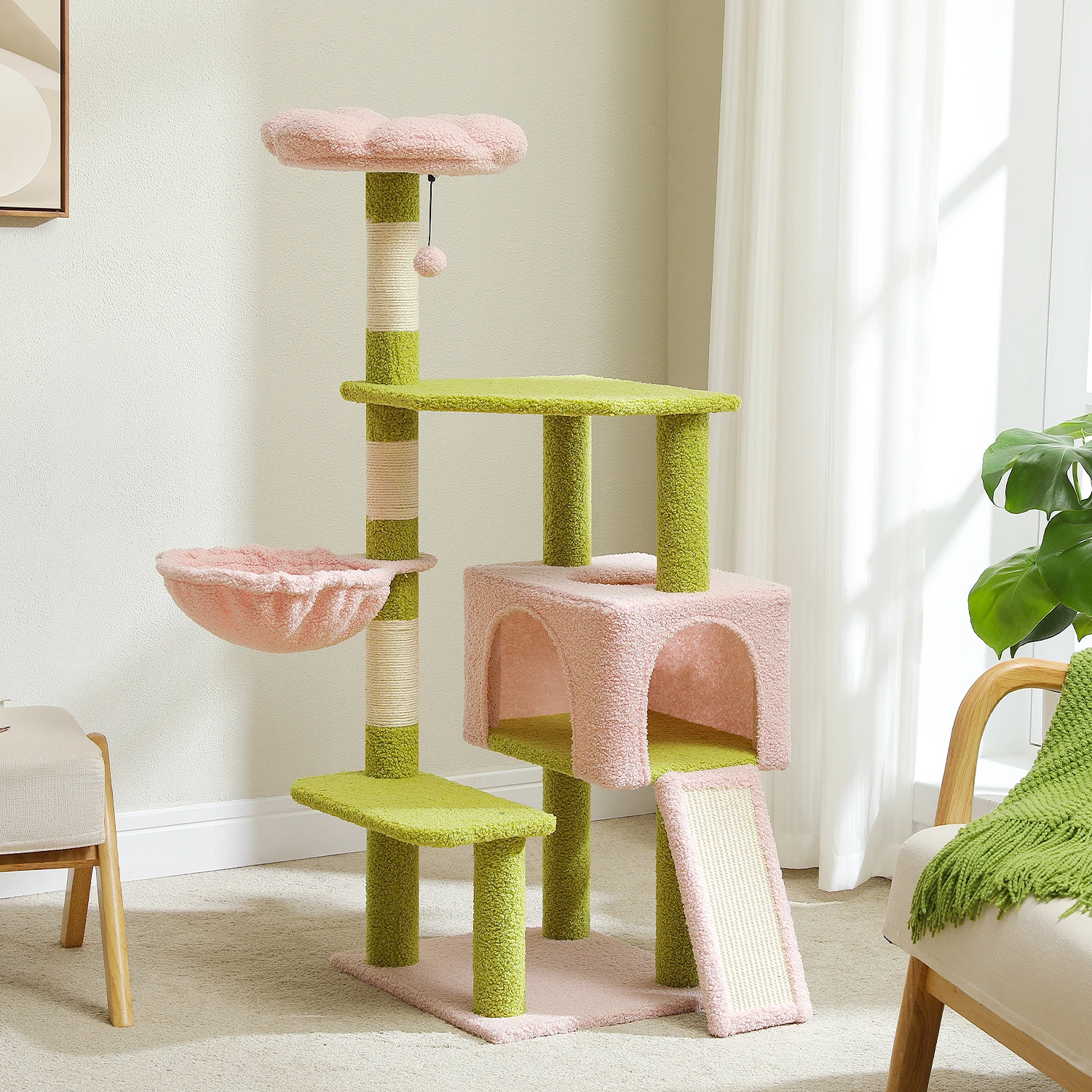 Materiales cómodos:El árbol está cubierto con materiales suaves y afelados, lo que garantiza una experiencia cómoda y acogedora para los gatos mientras se relajan o juegan en diferentes niveles.