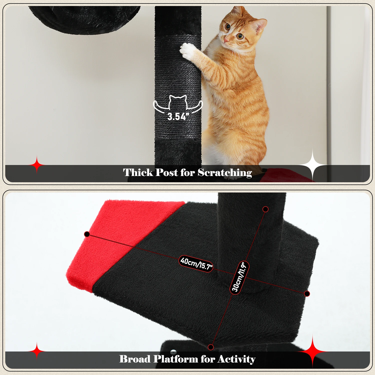 Altura ajustable para adaptación de capas: gracias a su diseño de varilla ajustable, este marco alto para trepar gatos puede adaptarse a diferentes alturas de techo, con un rango ajustable de 86,8 a 120 pulgadas.Este árbol para gatos puede adaptarse perfectamente a la mayoría de las habitaciones.Además, esta torre para gatos negros está construida con un poste resistente que mide 3,54 pulgadas de ancho, que es más grueso que los productos comparables en el mercado.