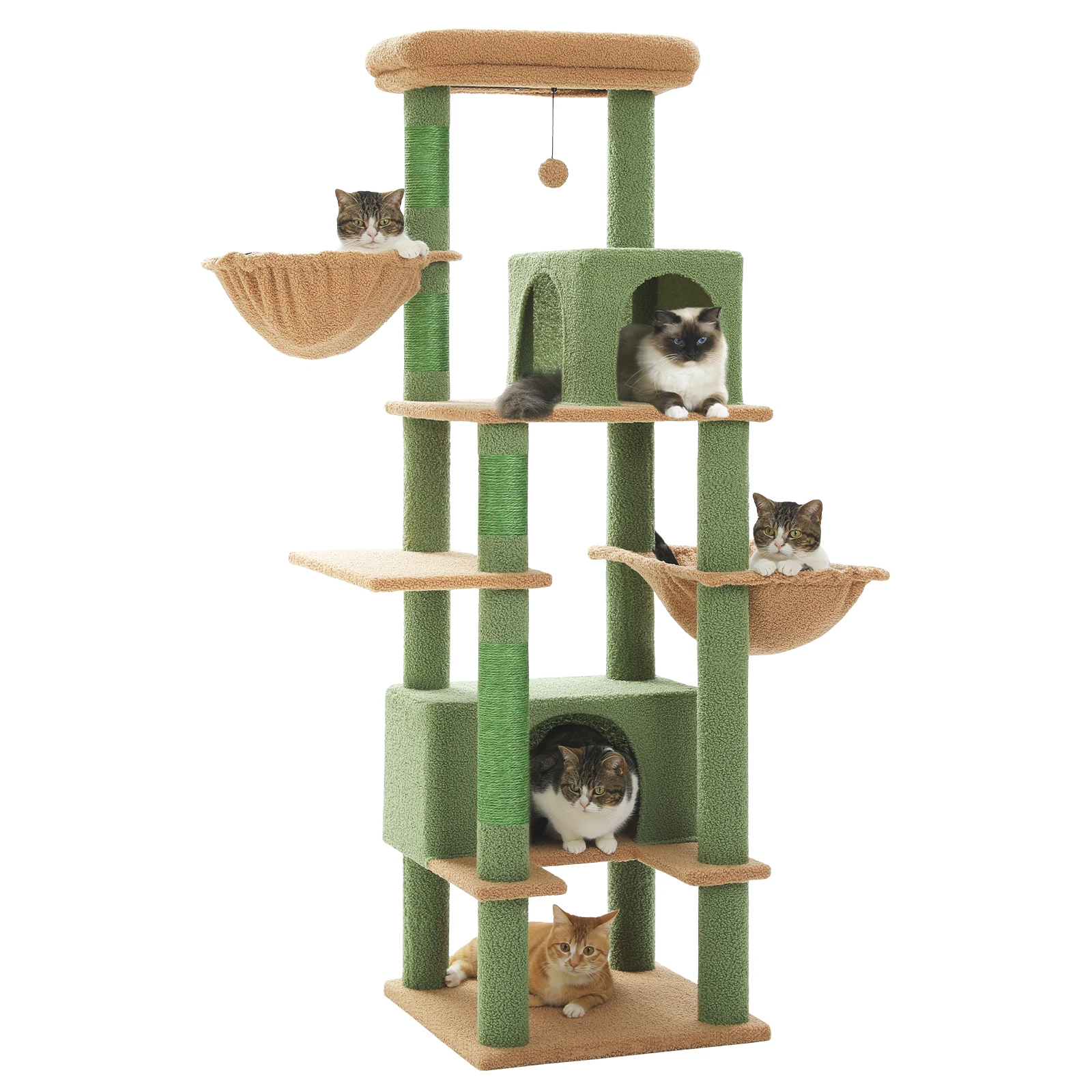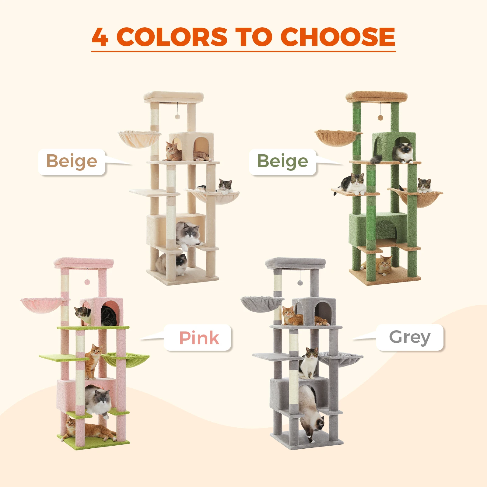 • Varios colores para elegir:Proporcionamos 4 colores en esta torre para gatos, por lo que hay varias opciones según sus preferencias.Un árbol para gatos de cactus o un árbol para gatos rosa pueden ser una decoración fresca en su habitación.El árbol para gatos alto PEQULTI de 6 niveles es adecuado para el hogar multigato.