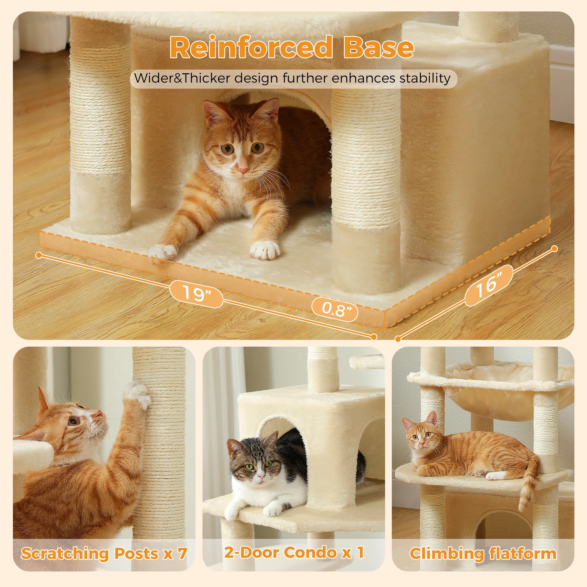 Árbol de lujo para gatos H164CM con hamaca de condominio, torre alta para gatos para interior, rascador para gatos, poste rascador para casa de gatos, percha espaciosa
