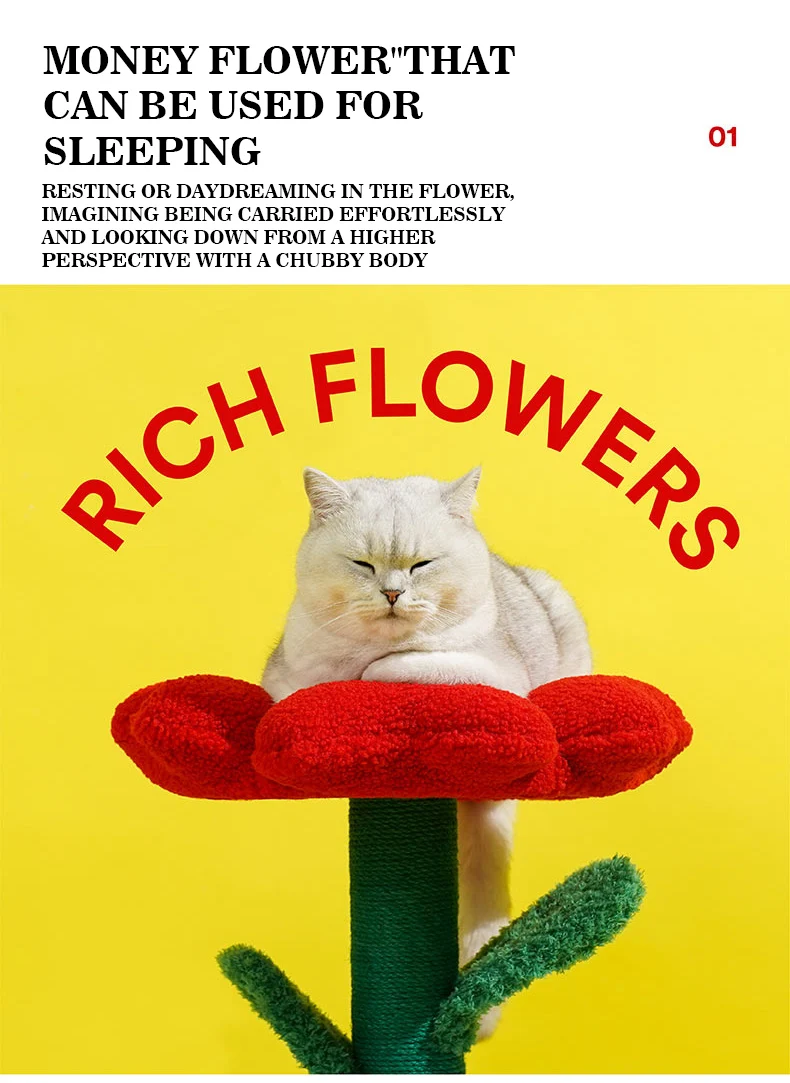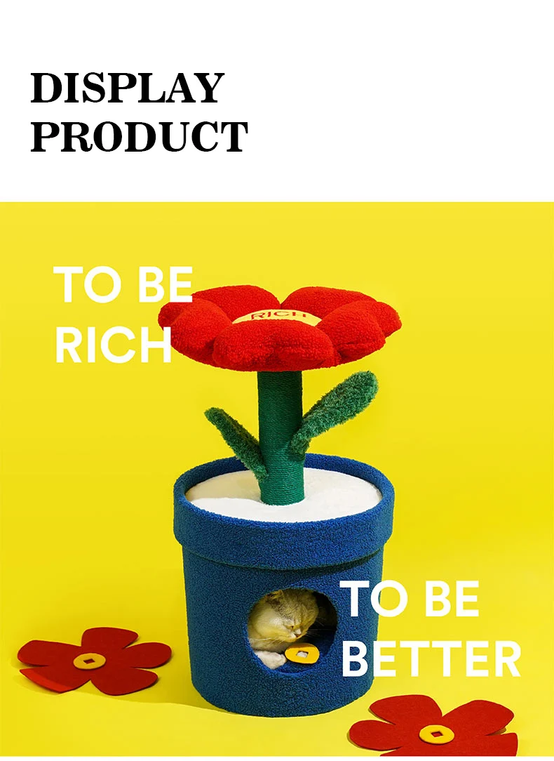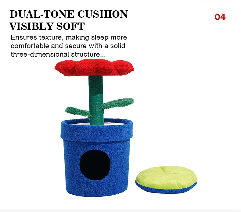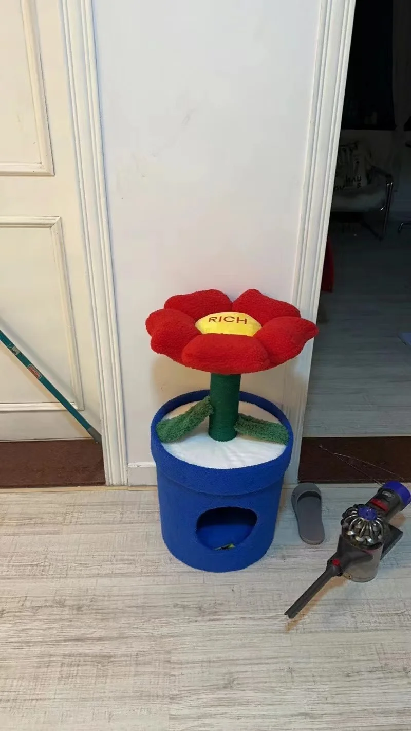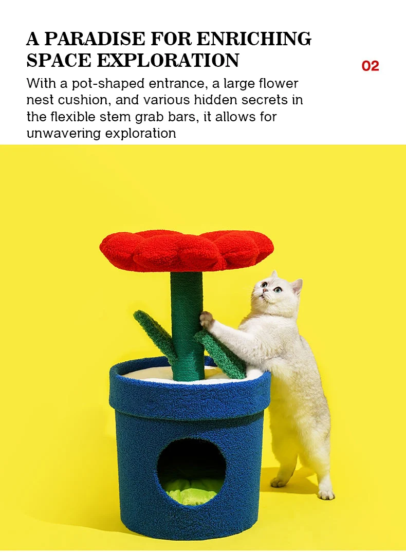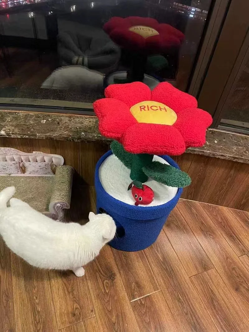 Árbol para gatos en maceta con flores rojas y cama para gatos integrada debajo del árbol para gatos de tamaño mediano (adecuado para gatos menores de 15 libras)